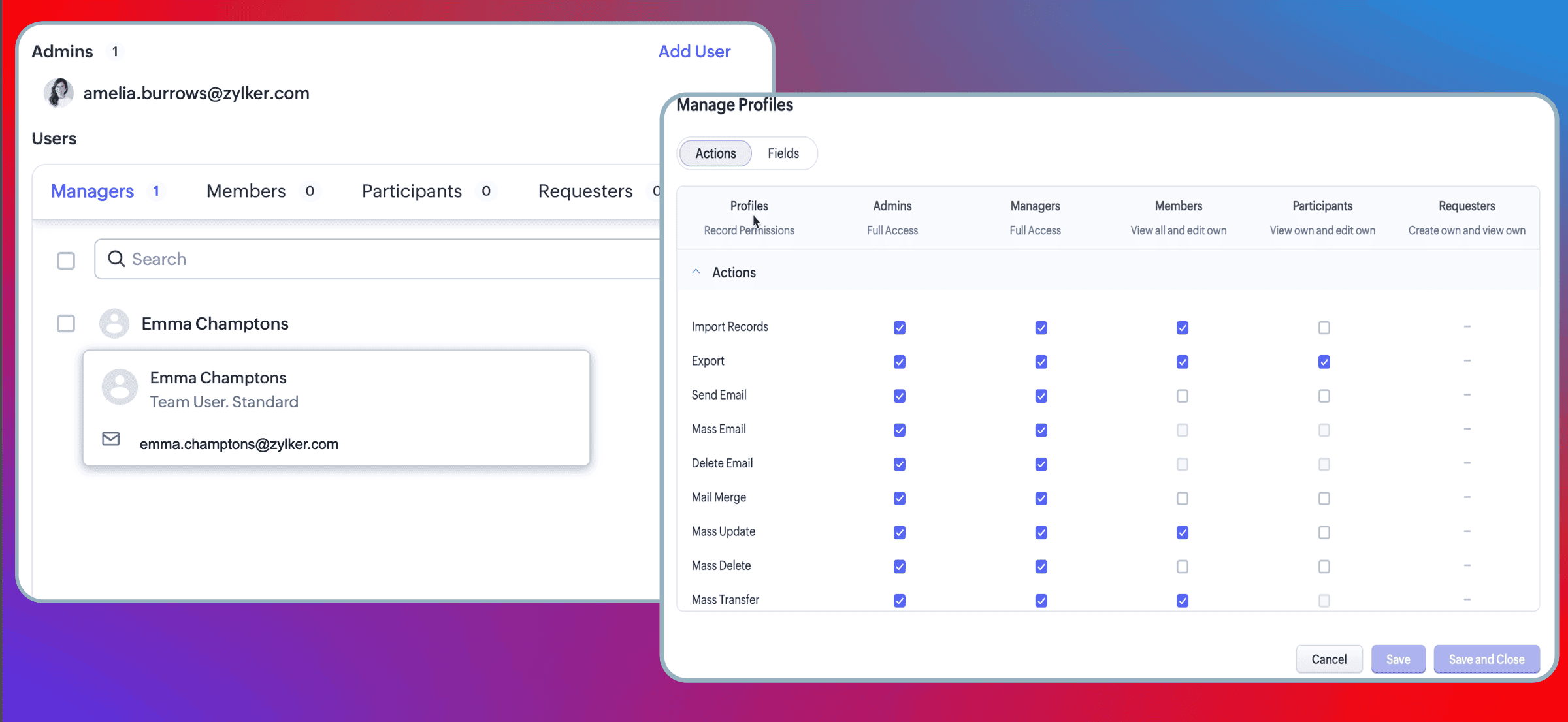 With respect to Team Modules, a Team User can be added as an Administrator, Manager, Member, Participant, or a requester to a Team Module. What these Users can or cannot do in a Team Module will solely depend on the profile they are added to in that Team Module.