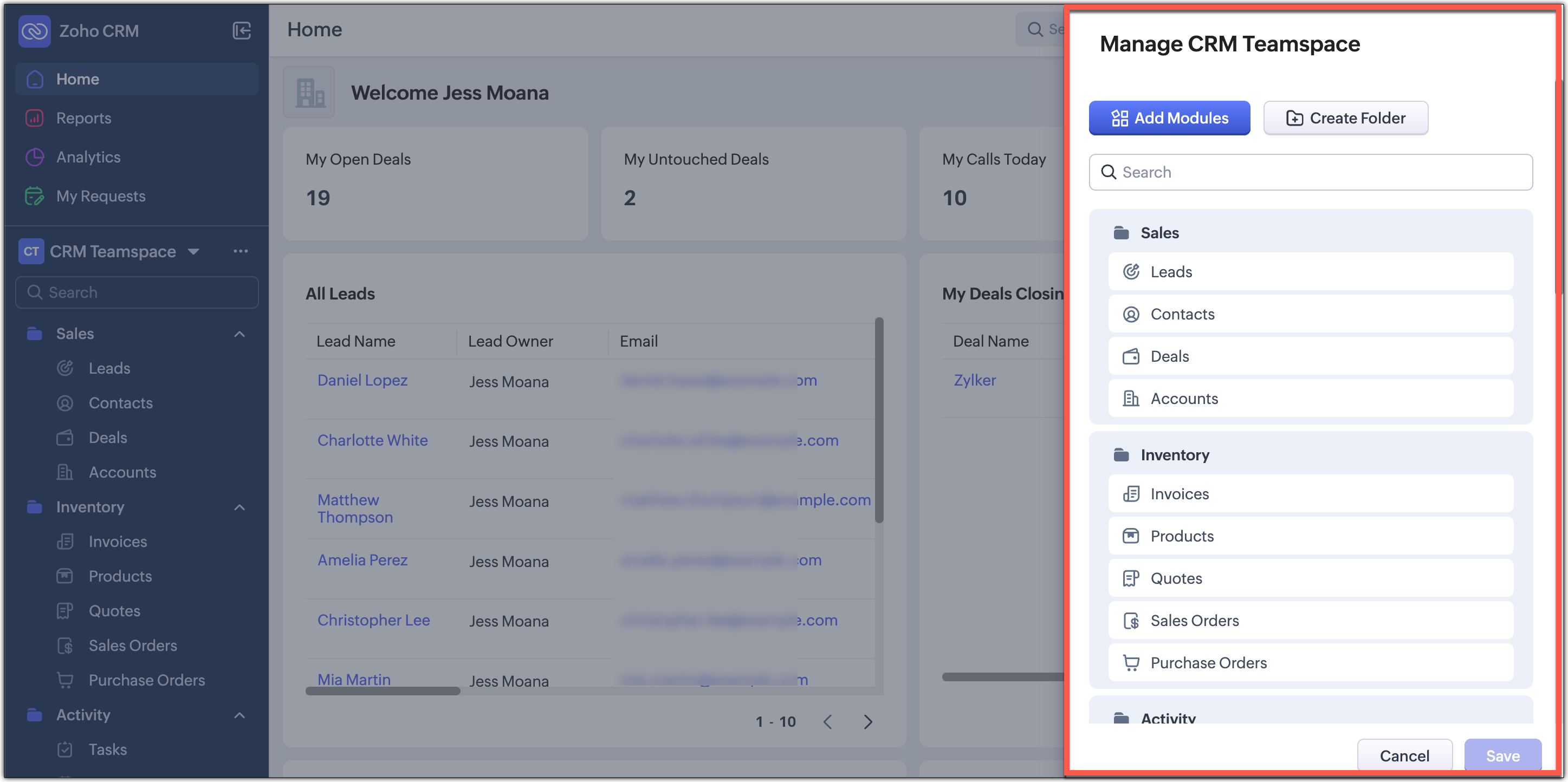 Availability : This improved interface is supported only for standalone CRM accounts at the moment. It is not yet supported for CRMPlus or Zoho One.