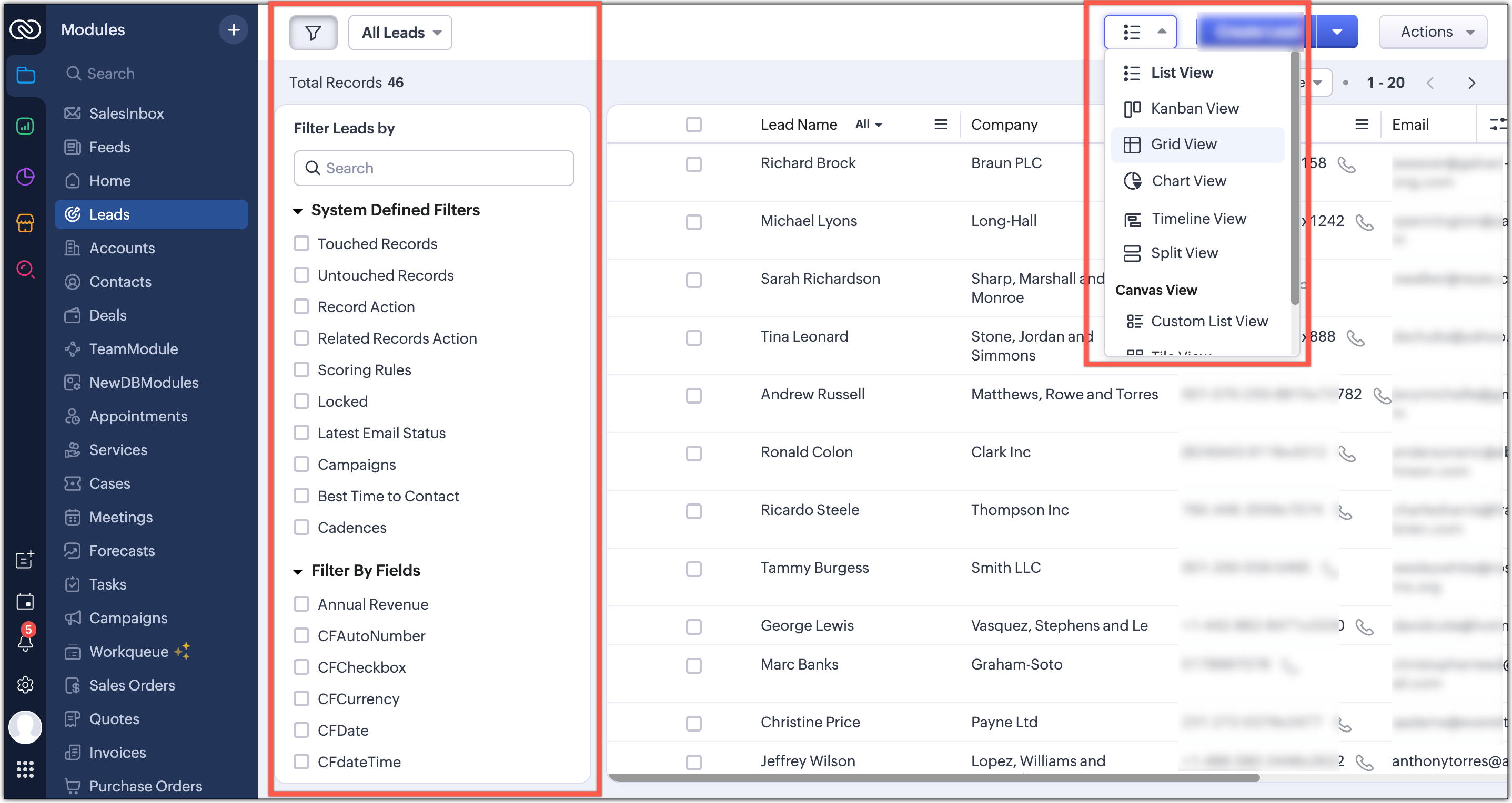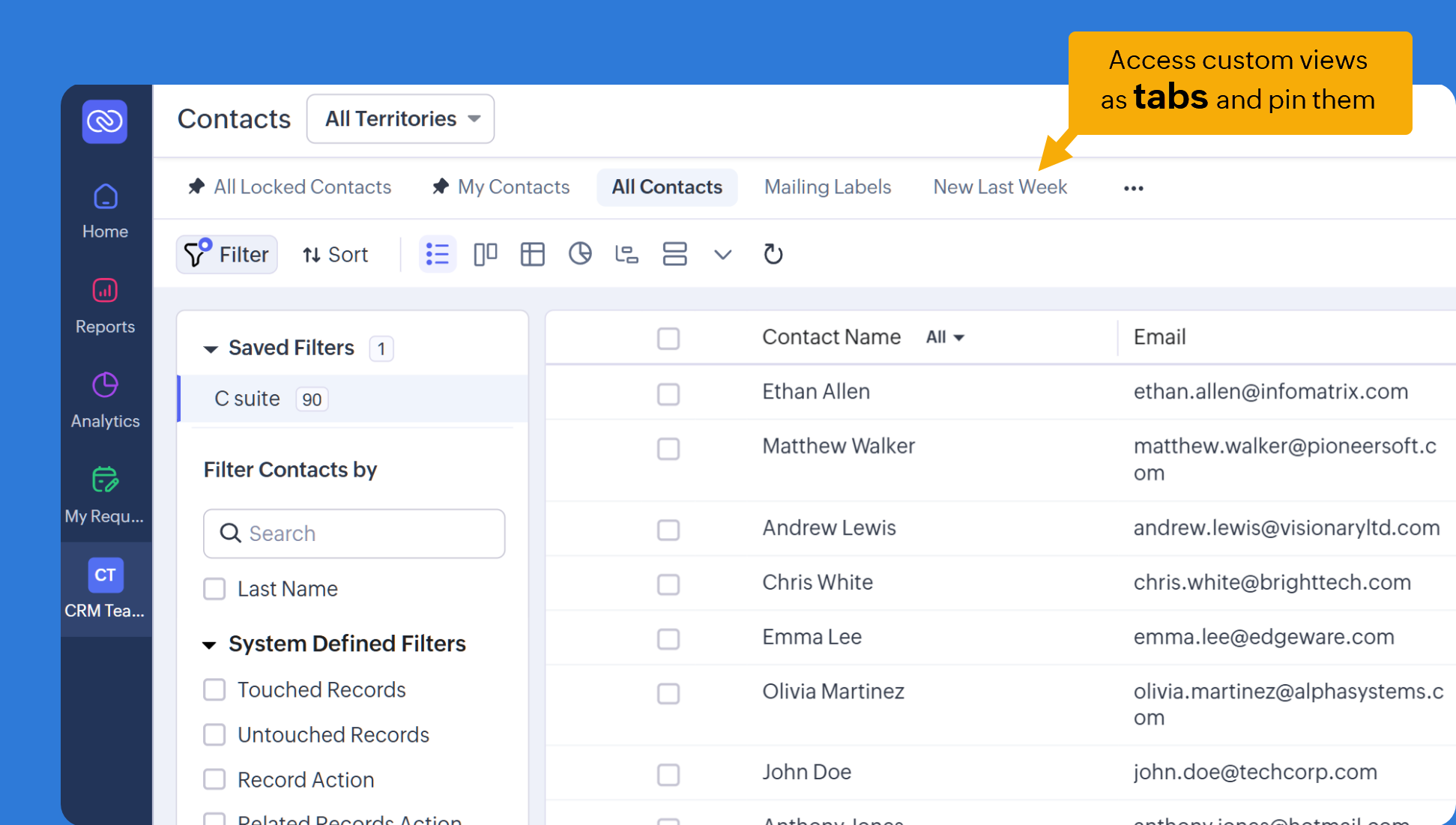 We've introduced Custom View as Tabs from where you can choose to display your custom views as separate tabs to make them easy to spot and quick to open. This feature is available only for the improved Nextgen interface. It is not supported in Nextgen 2.0 UI or the old UI.