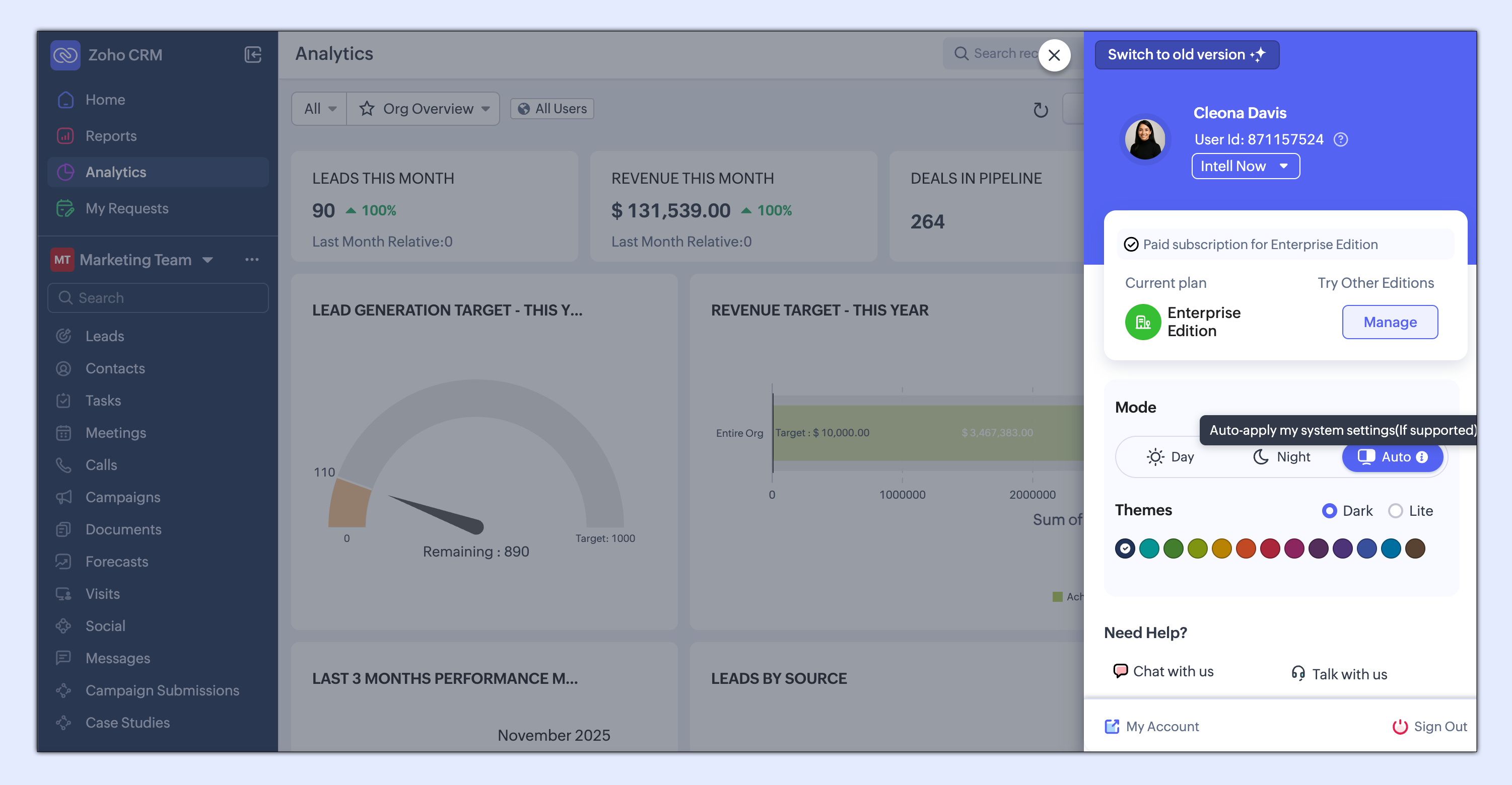 - Auto Mode: Let your system decide between Night or Day mode based on device settings.