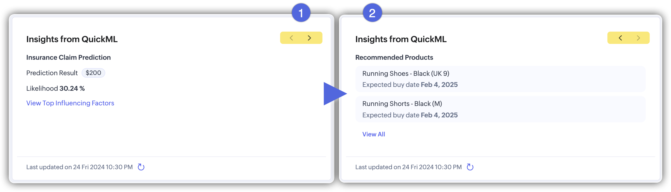 QuickML currently supports four types of model outputs, which are displayed as widget variations in CRM: