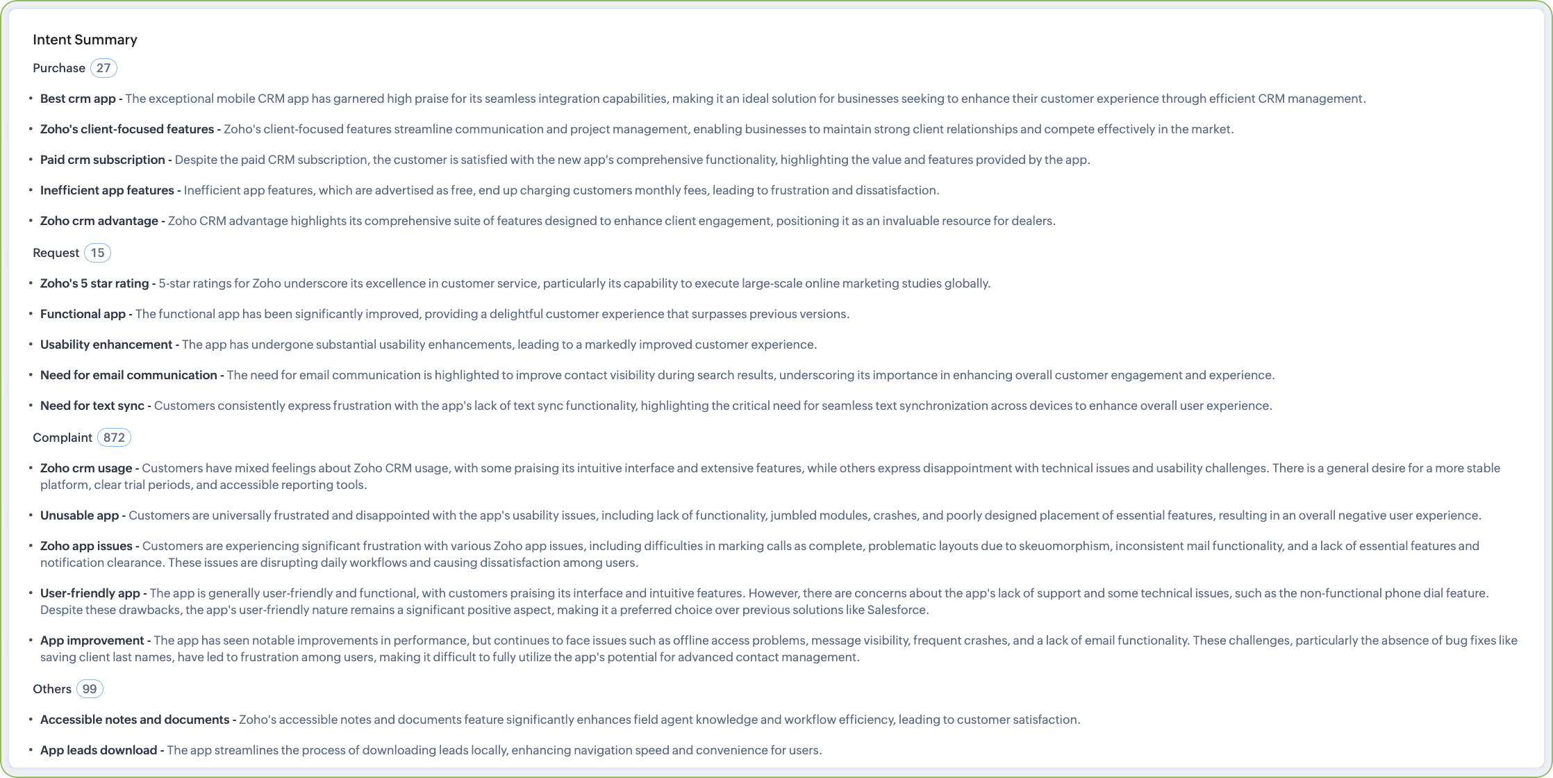 Summaries allow on-the-go skimming of insights. Unlike analytical charts, you need not infer or interpret data and behavior—you already have all the responses, contextually collated for direct consumption.
