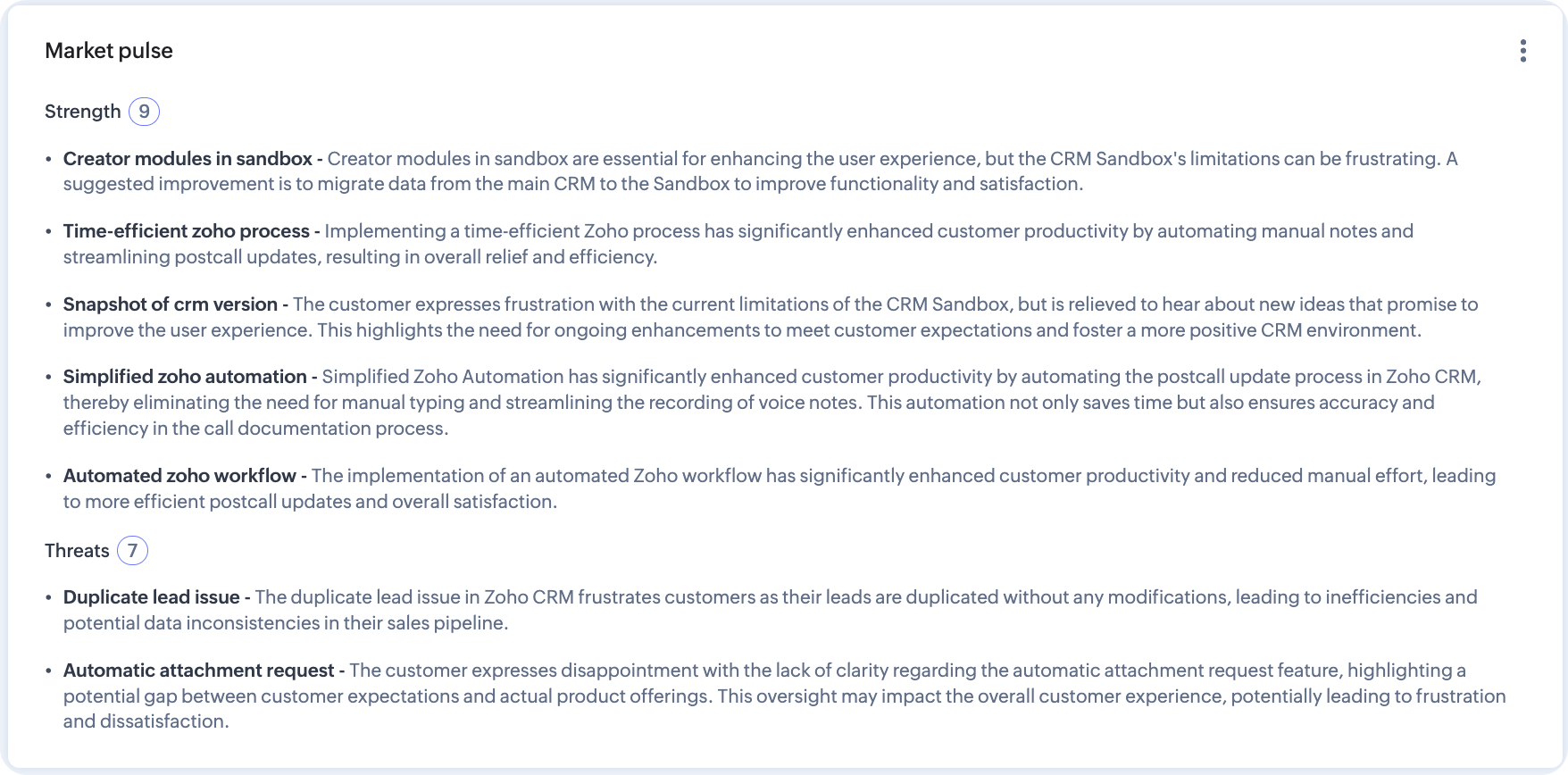 Summary analysis is a VoC dashboard built to provide a rundown of your customers’ responses and behaviors. The dashboard comes with multiple summaries providing insights about various analysis.