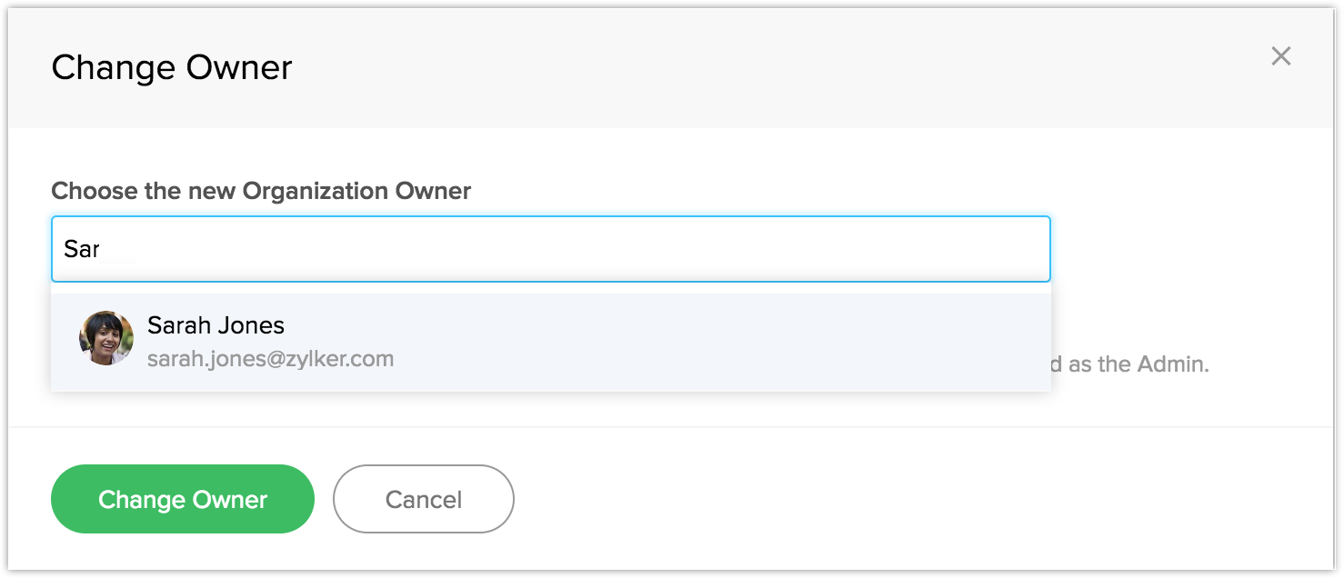 Note: Only the existing owner will have the option to change the owner in Zoho CRM Plus.