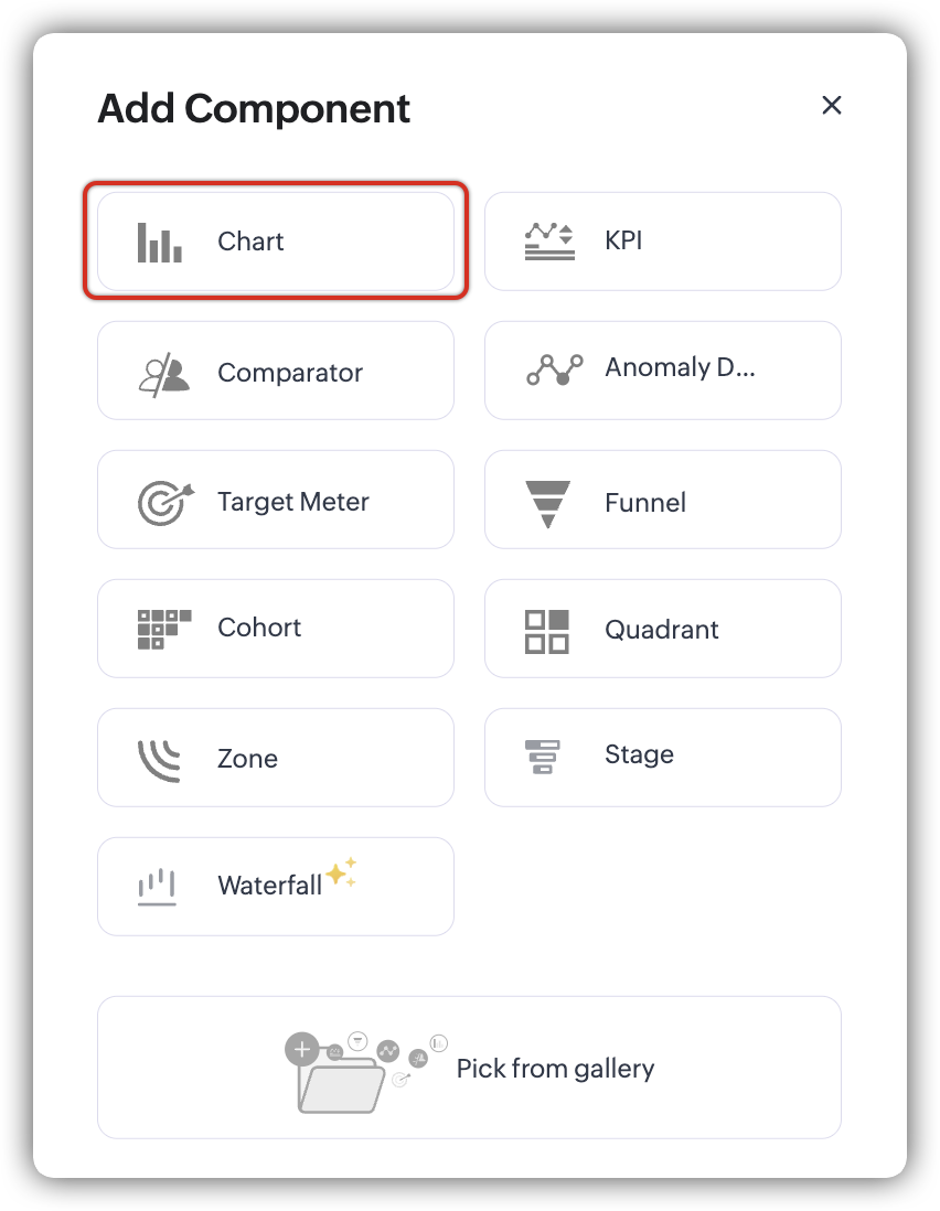 - Click Add Component, and select Charts.