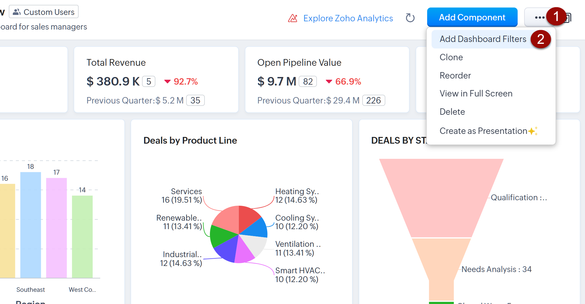 - Click the More (...) button in the top-right corner and select Add Dashboard Filters.