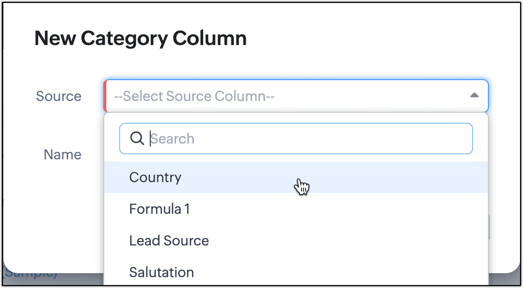 - Select the source column from one of the picklist fields available, which is 'Country' in this example.