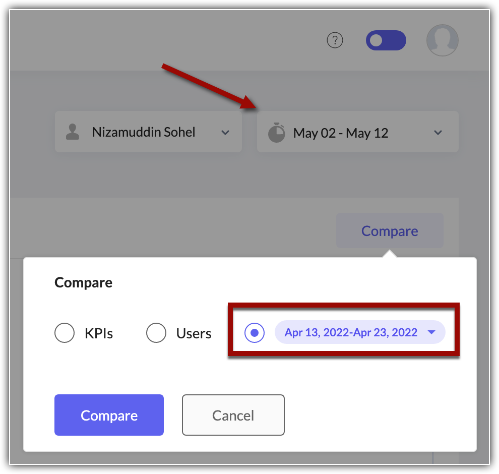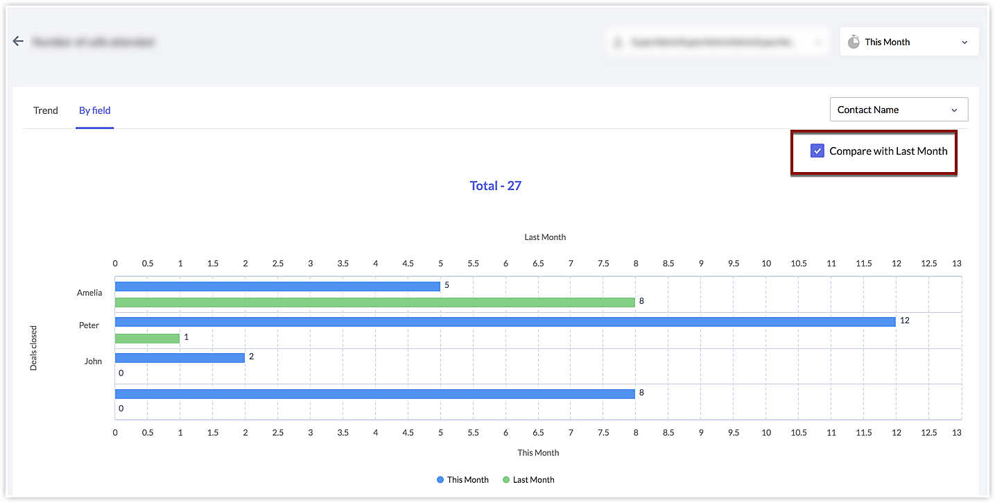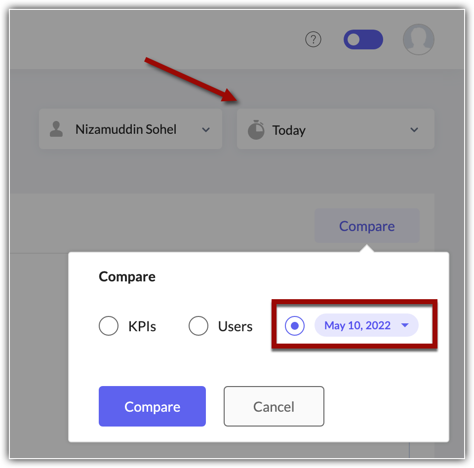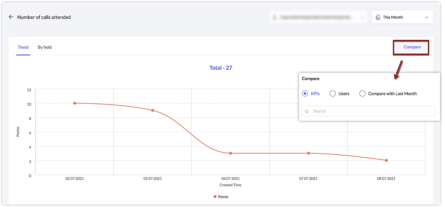 In order to understand and compare the KPI results between different time periods, you must select the time based on which to consider records for KPI evaluation. For example, if you select the created time of a record, you can: