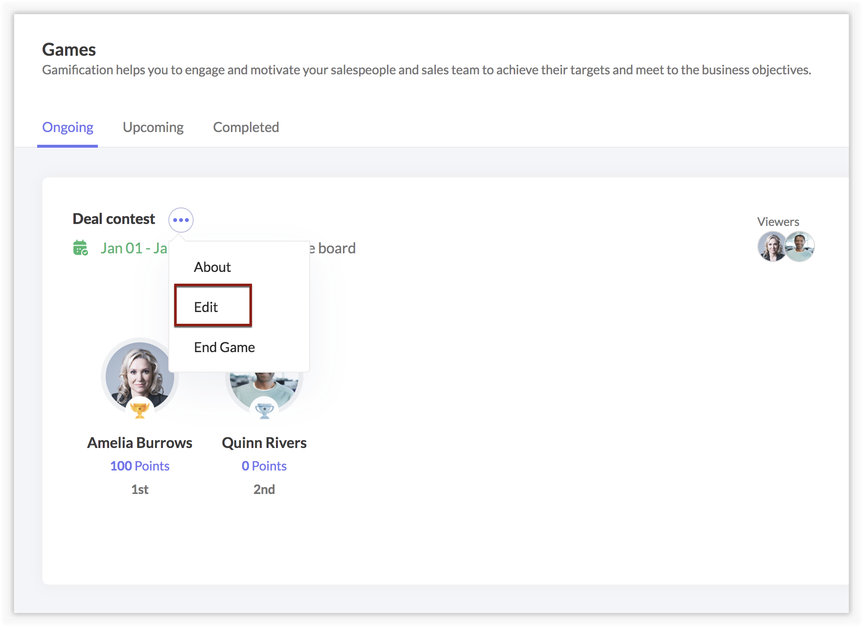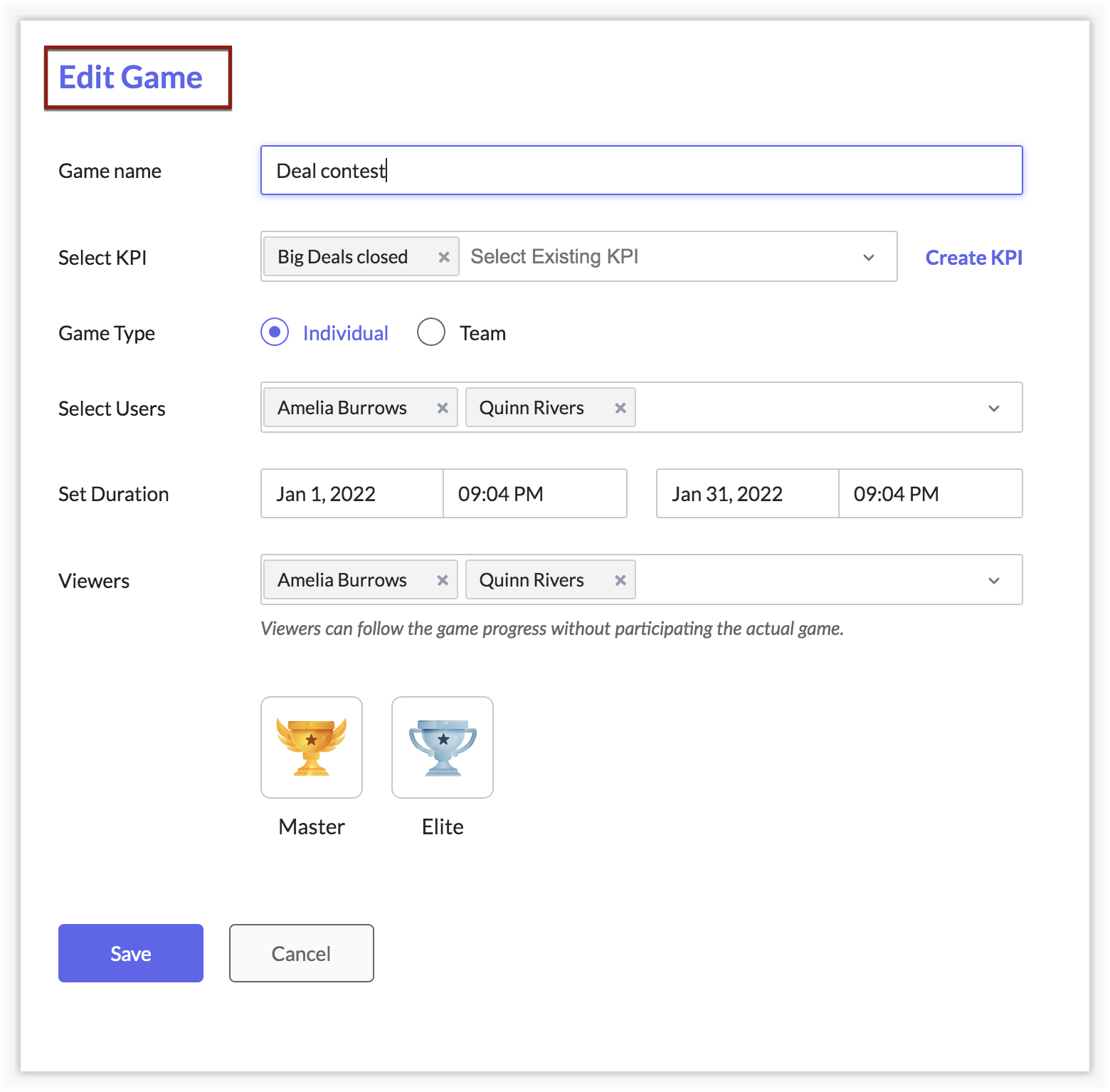 - Edit any parameter including the participants, duration, rewards, KPIs or name.