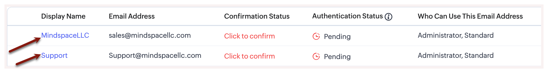 You can edit the Display Name and add or delete profiles in the Who can use this Email Address.