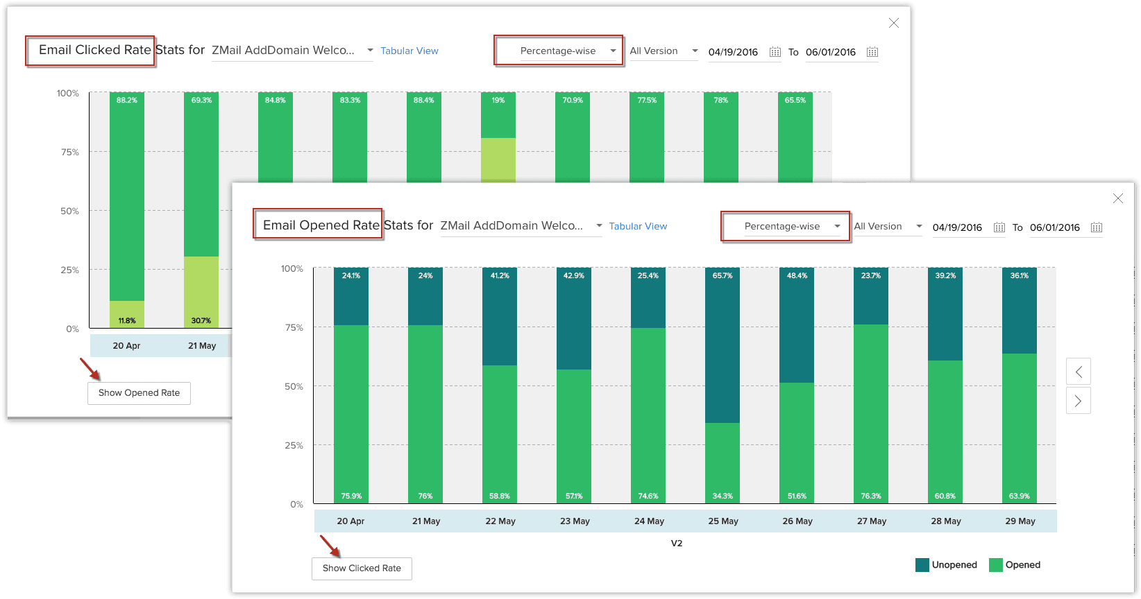 2. If a sent email is clicked by the sender, then the "opened email" stats will consider the email as opened.