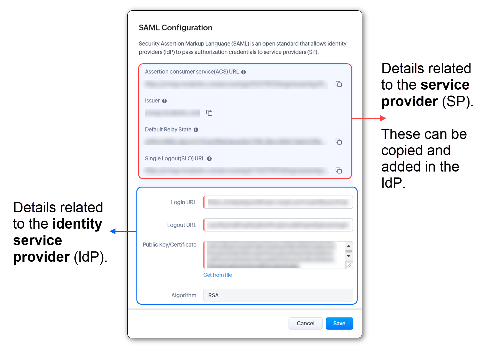 SSO works because of communication between the IdP and SPs. To ensure that this happens smoothly, you've got to add some IdP-related details in the SP and vice versa.