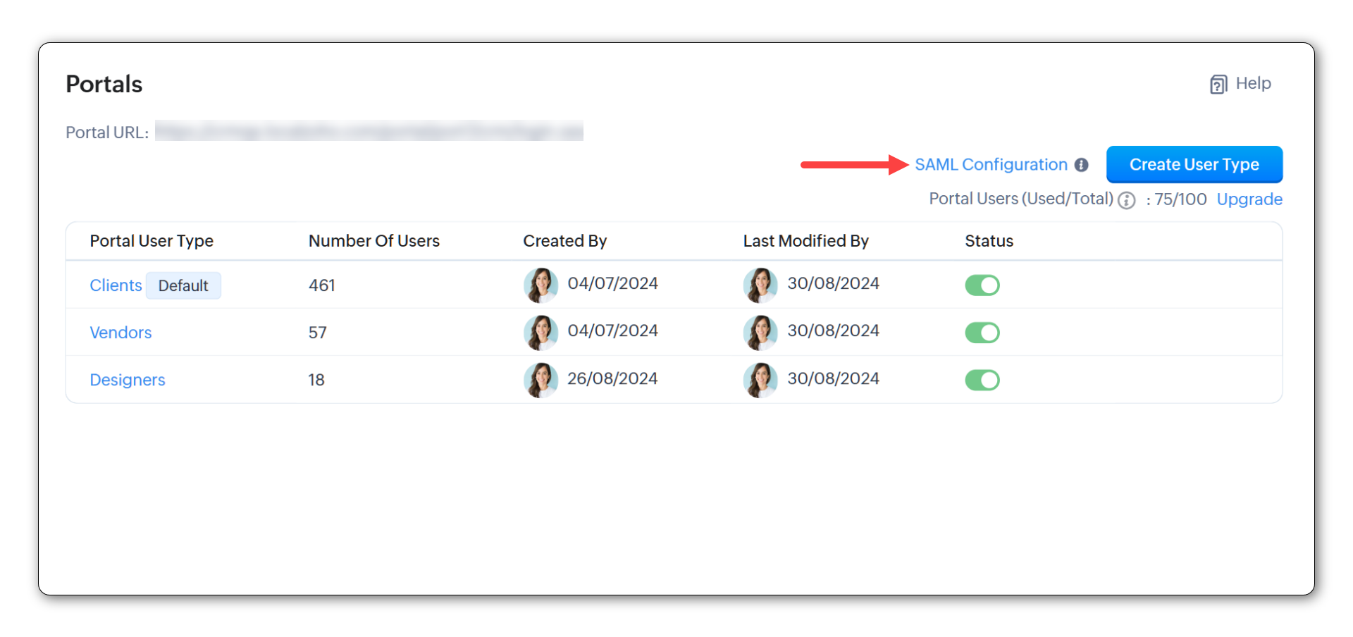 If you disable SAML SSO for your portal, portal users will be able to log in to the CRM portal using the credentials they used when signing up.