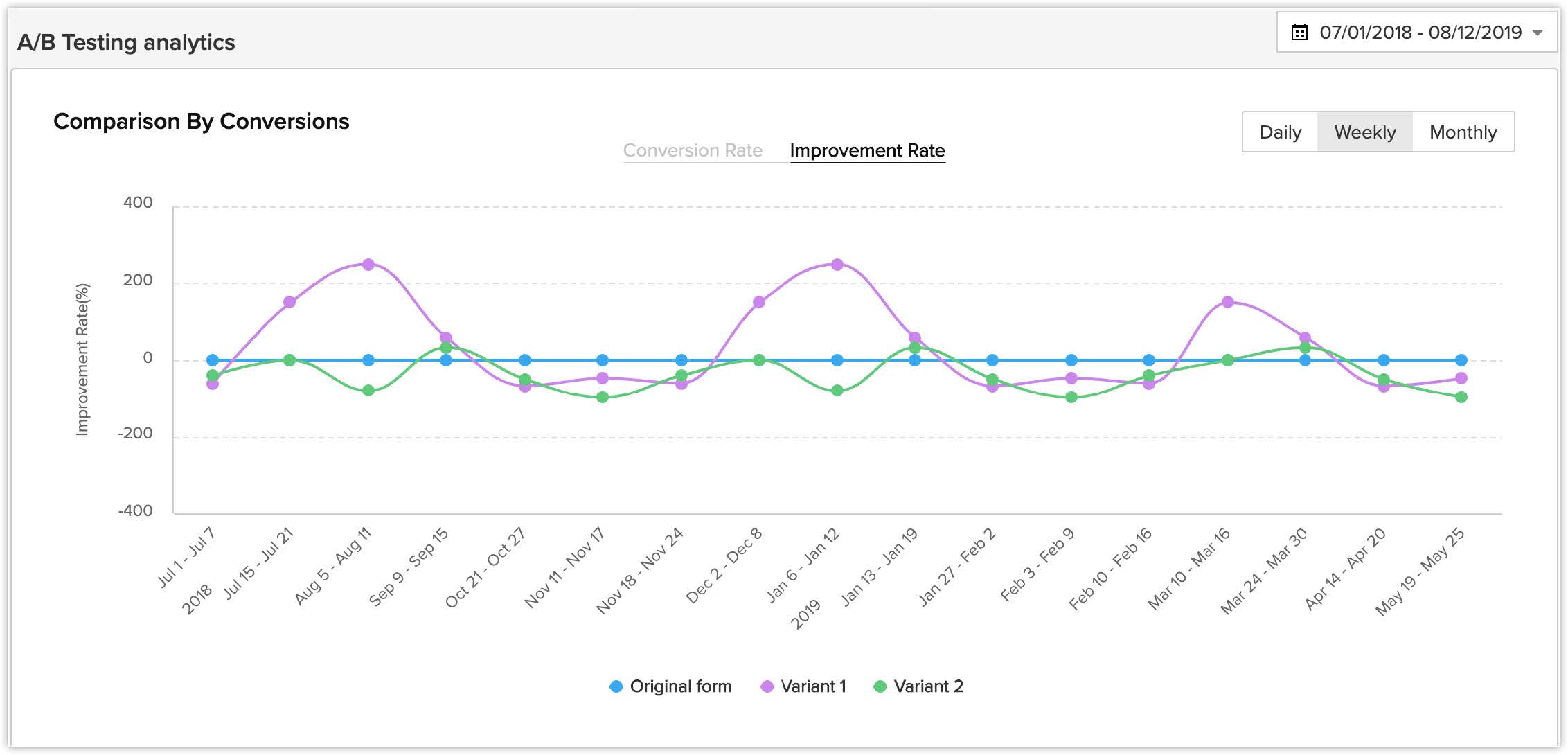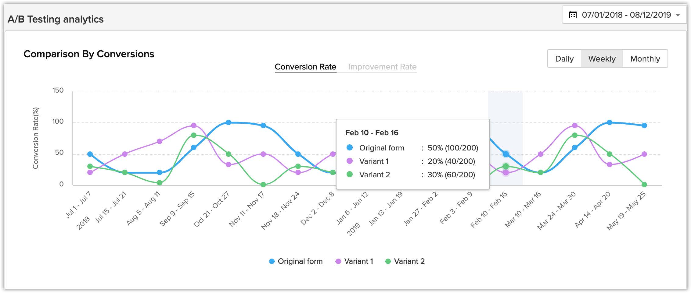 • The conversion rate and improvement in the conversion rate compared to original form.