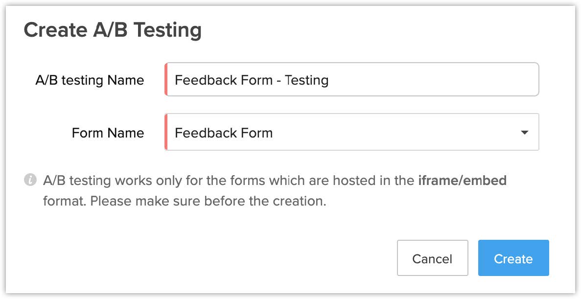 1. A/B testing works only for webforms that are hosted in Embed or iFrame format.