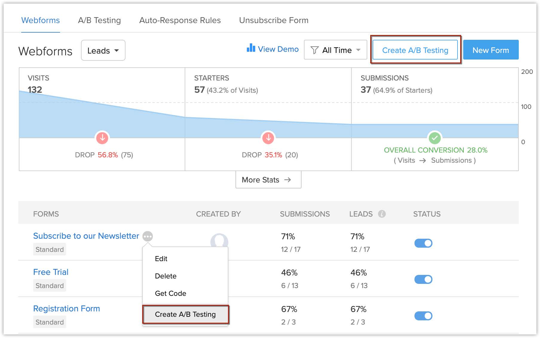 Compare and A/B test different versions of your webforms in Zoho CRM Help guide: Webform A/B Testing