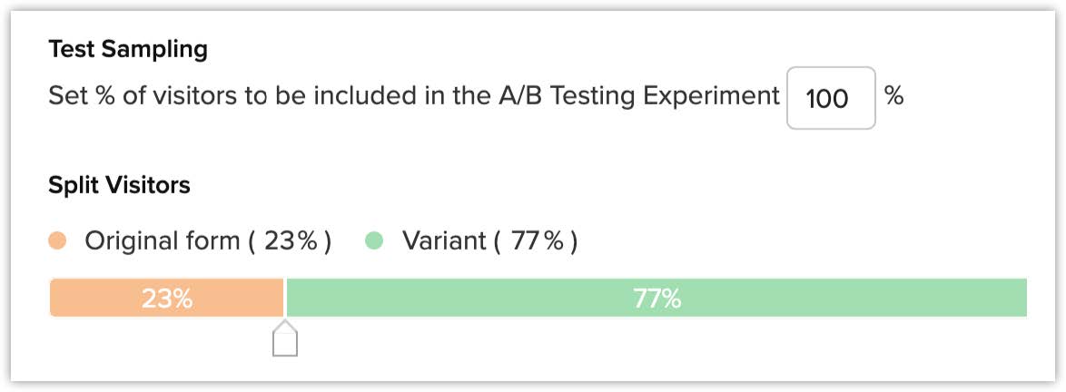 • Split the visitors between the different versions of the form by dragging the handle to the left or right.