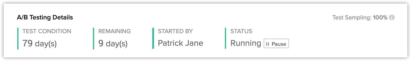 • Paused: An ongoing A/B test has been temporarily put on hold.