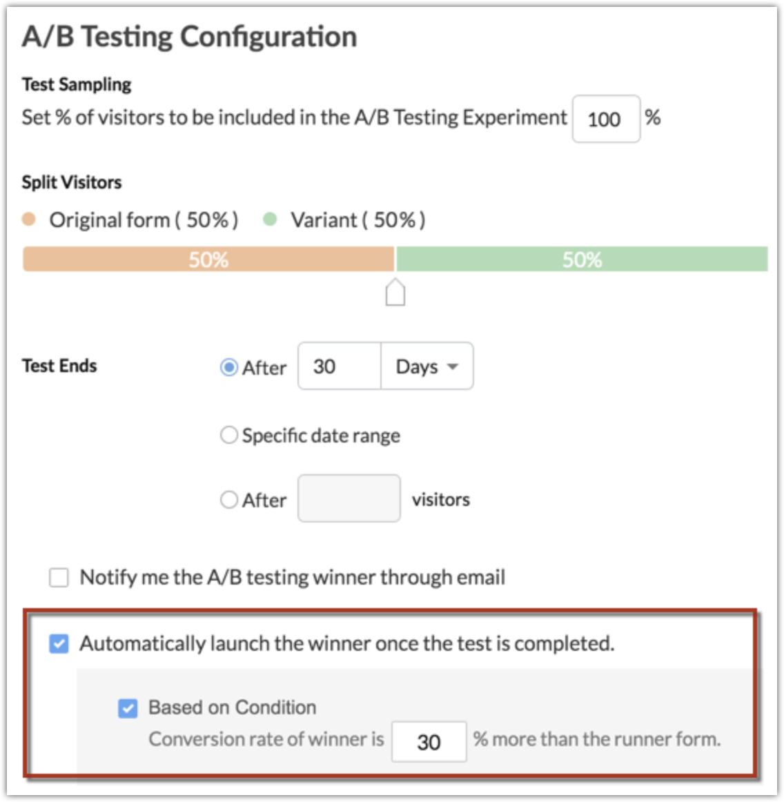 • The winner: The version of the form with the highest conversion rate after the A/B test is complete.