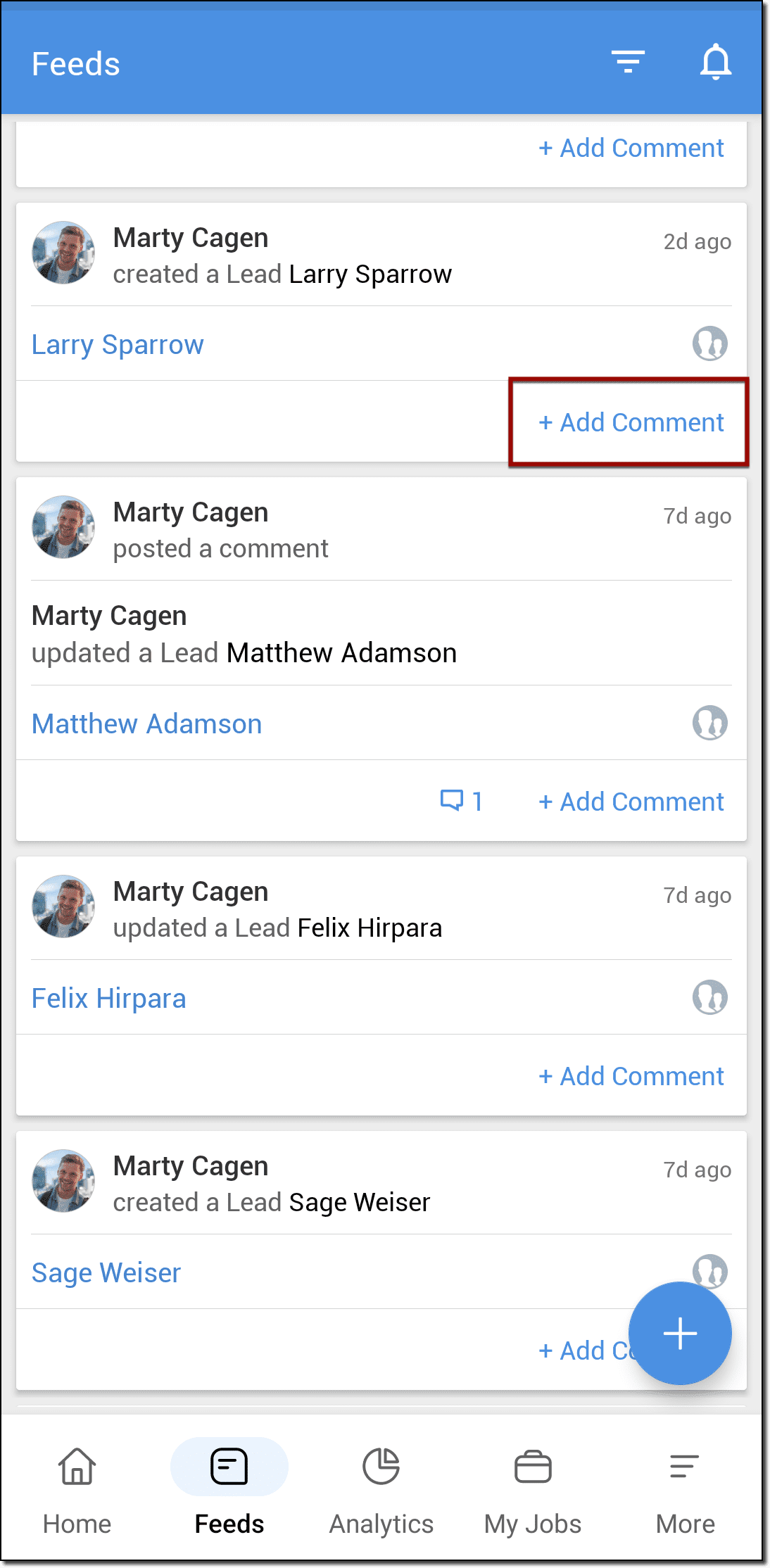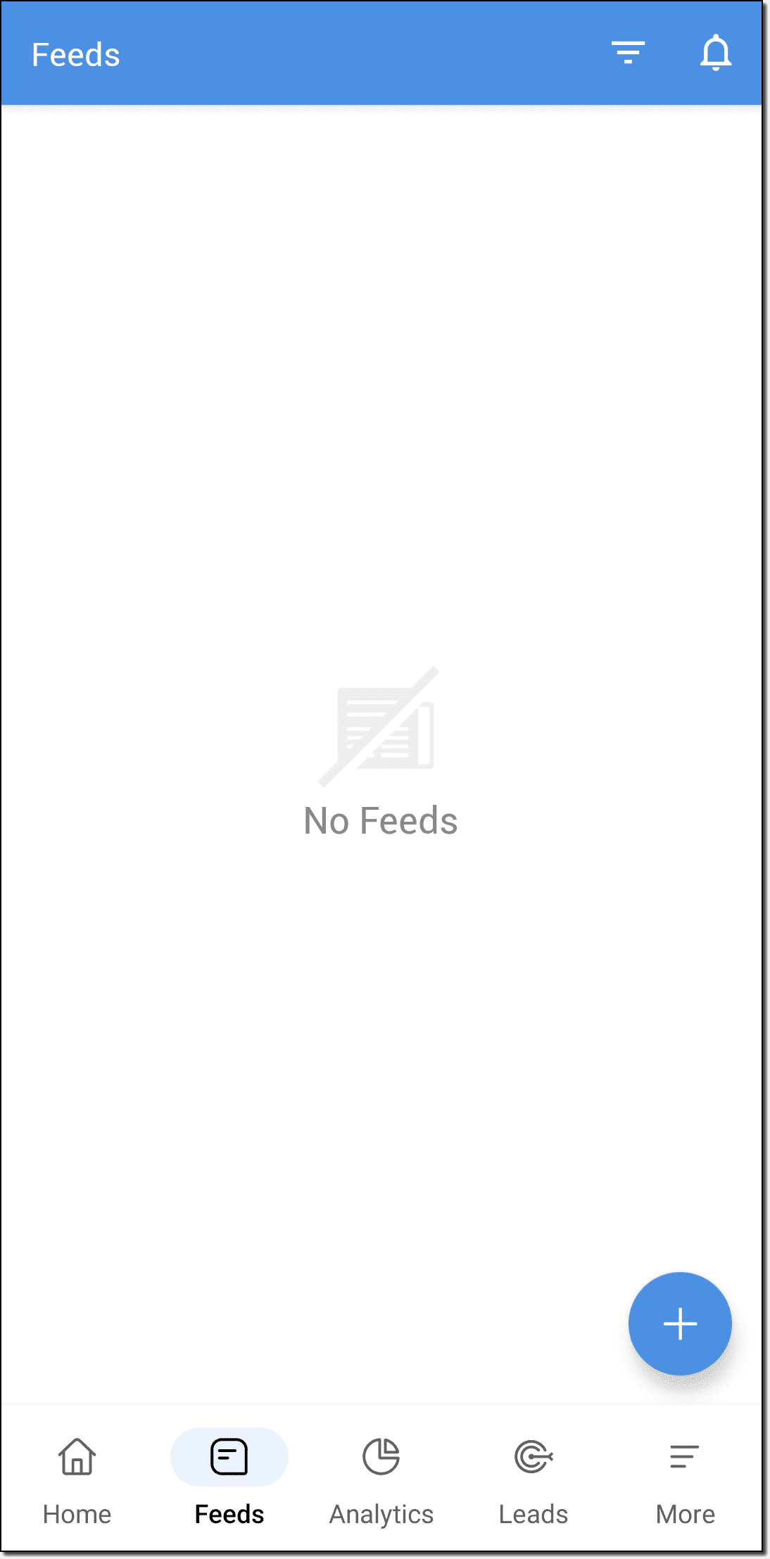 1. Go to Feeds in your Zoho CRM app.  A list of feeds will appear.