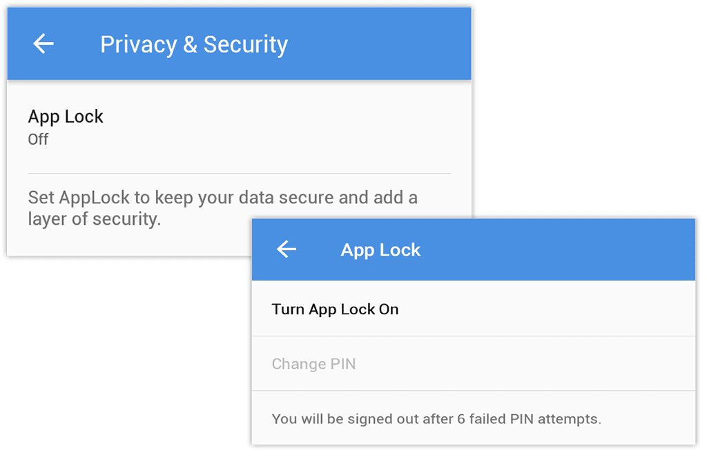 - Tap Settings > Privacy and Security > Turn App Lock On.