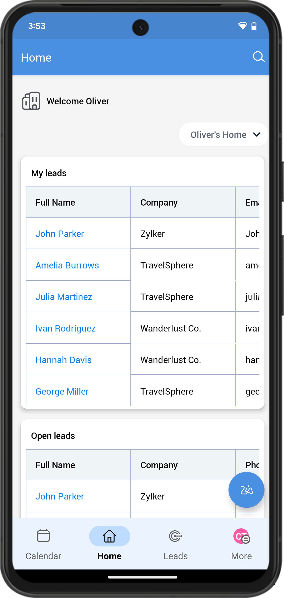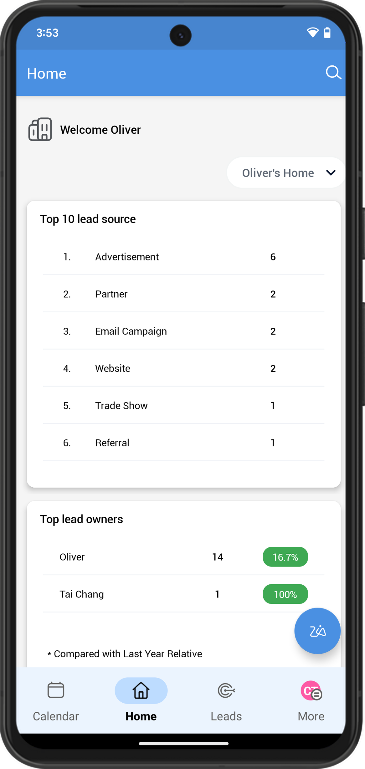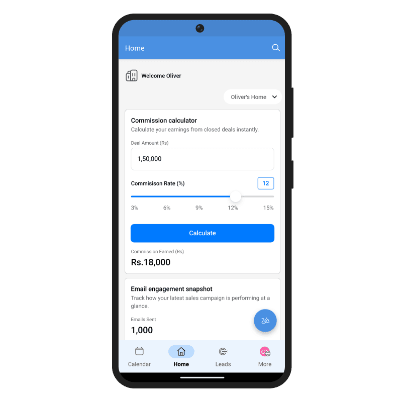 Your homepage acts as a progress tracker bringing together all the important details you need, such as meetings, deals, leads, and more.