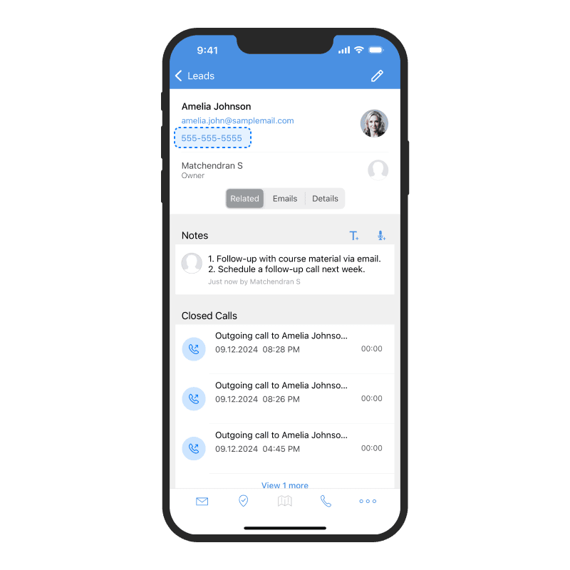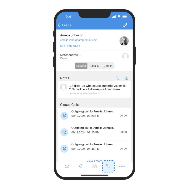 After setting up the built-in telephony in Zoho CRM web, you can make VoIP calls using the mobile app. This lets you call over the internet without needing a SIM card.
