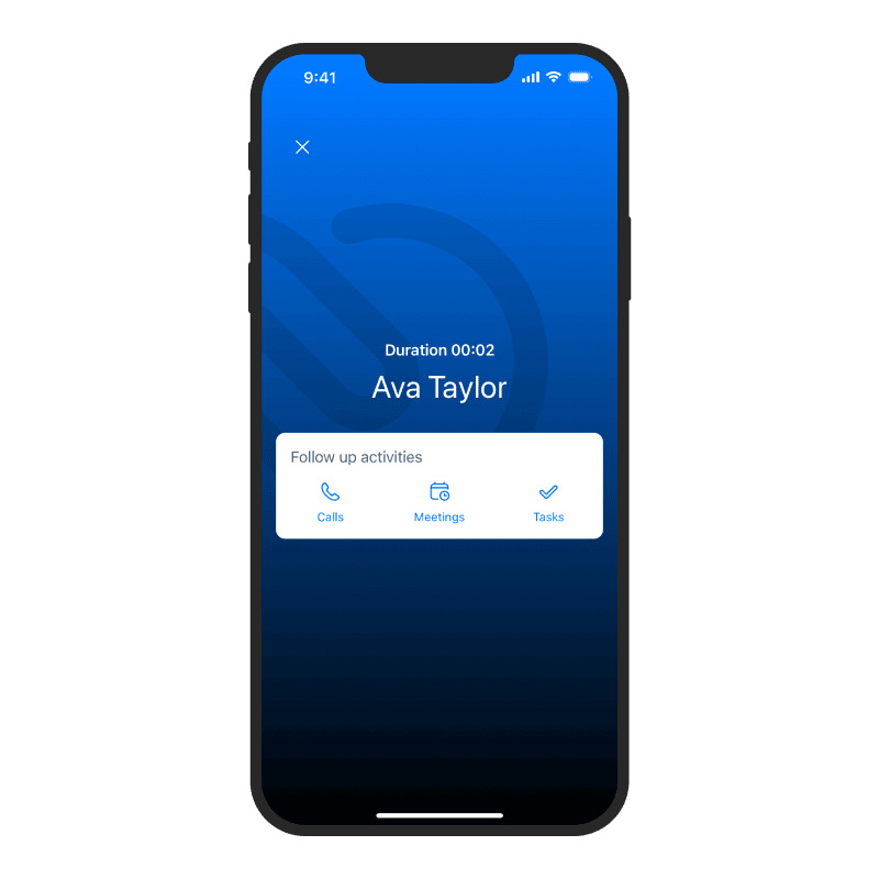 Info: Once the call ends, the follow-up activities will be displayed on the screen. You can select the desired activity and schedule it accordingly.