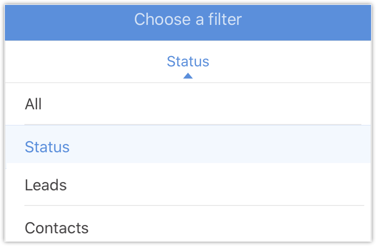 2. Filter the items by tapping the drop-down icon at the top and selecting the Module of your choice.