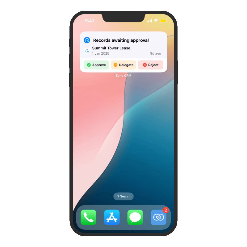 The Approvals widget displays all the records waiting for your approval. You’ll see options to approve, delegate, or reject each request.