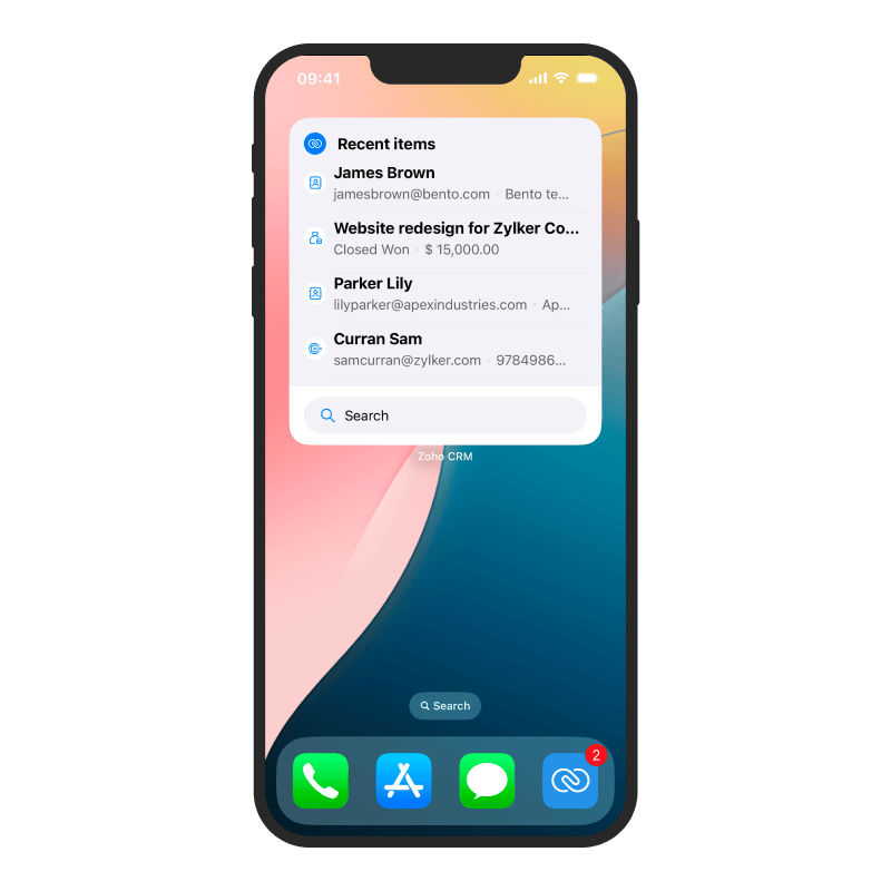 The Zoho CRM iOS app offers various widgets with the help of which you can stay updated on: