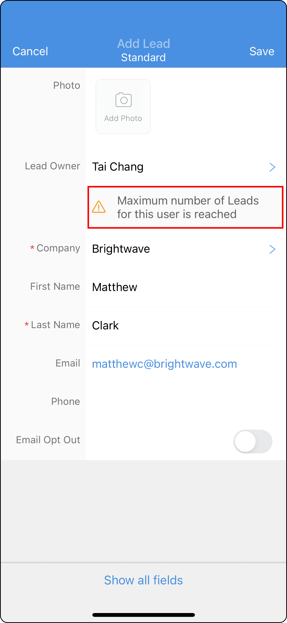 For example, if a user’s threshold is set to 10 records, an alert will appear on mobile when this limit is exceeded, notifying the assignee. If needed, they can then reassign the record to another user with more bandwidth.