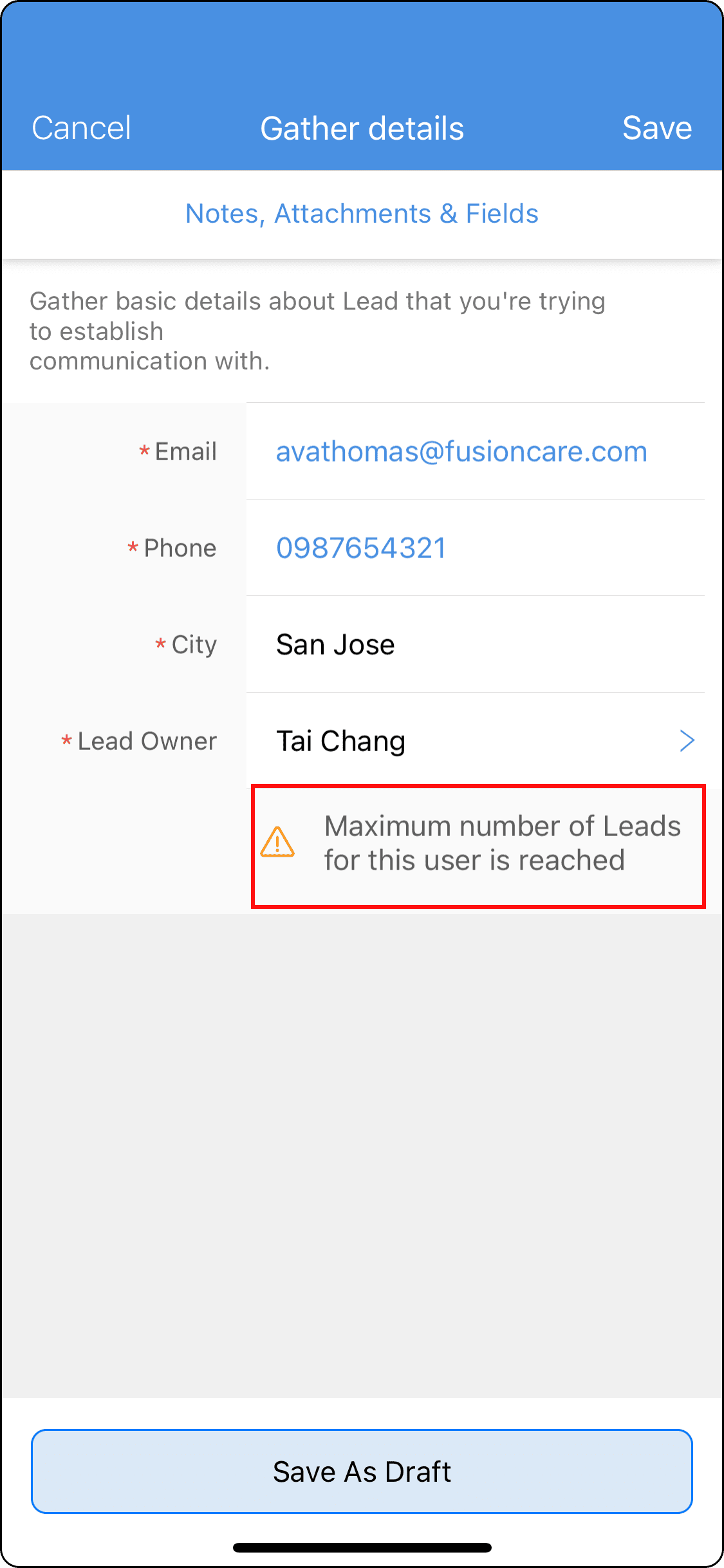 Note: The assignment threshold comes into effect on mobile devices the minute the limits are set up on the web app. Click here to learn more about the Assignment Threshold in Zoho CRM.