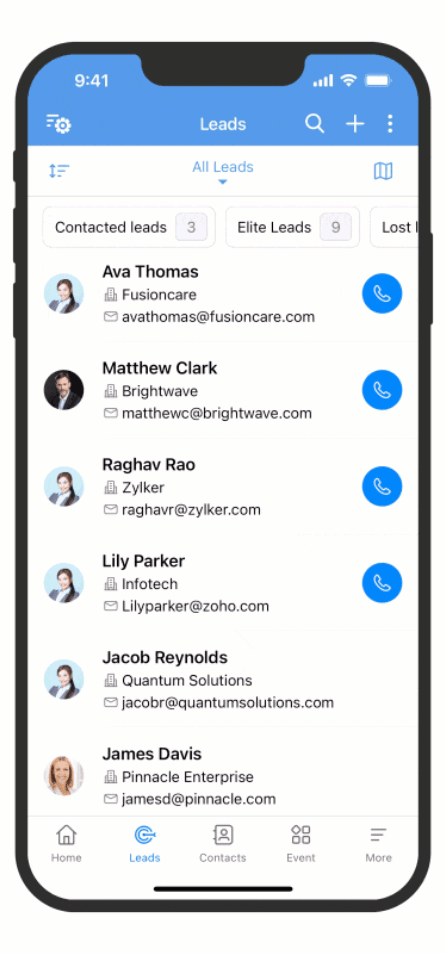 With Zoho CRM iOS app's record sharing feature, users can easily share important records with the entire organization or specific users, roles, or groups.