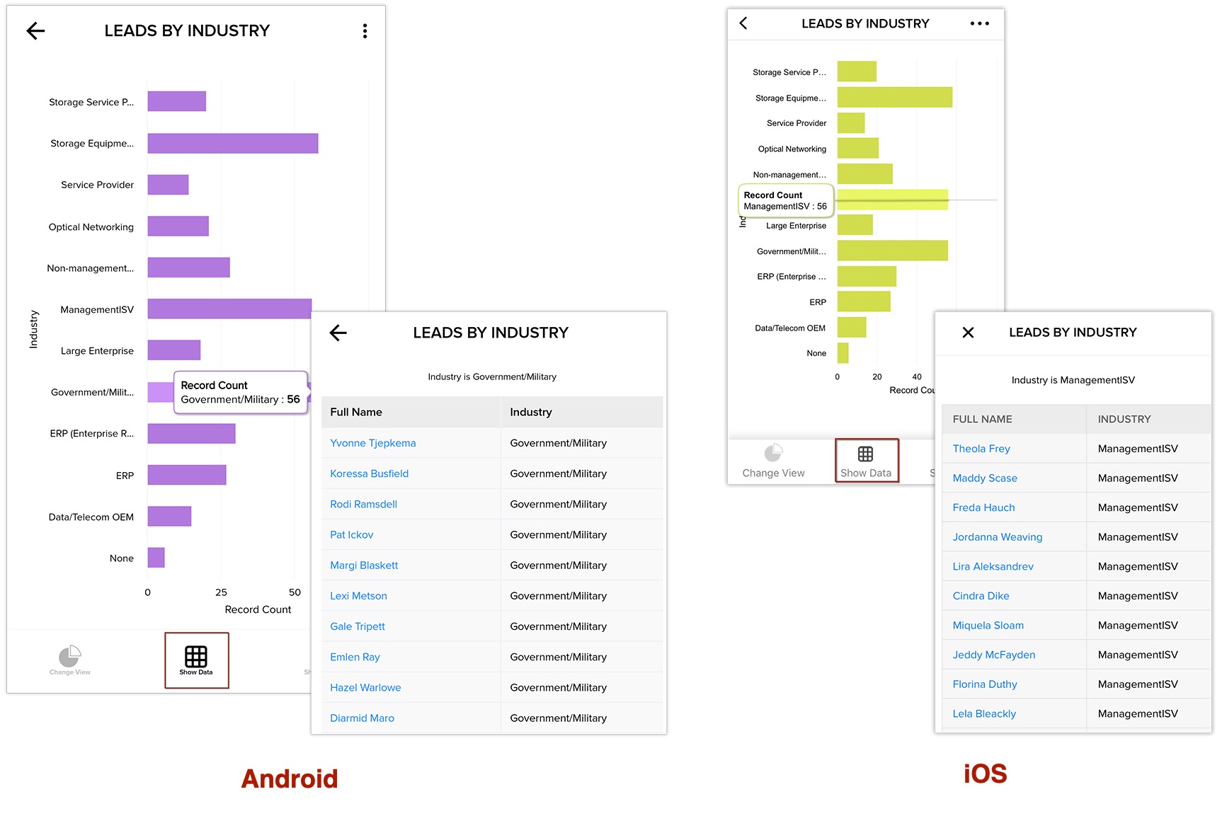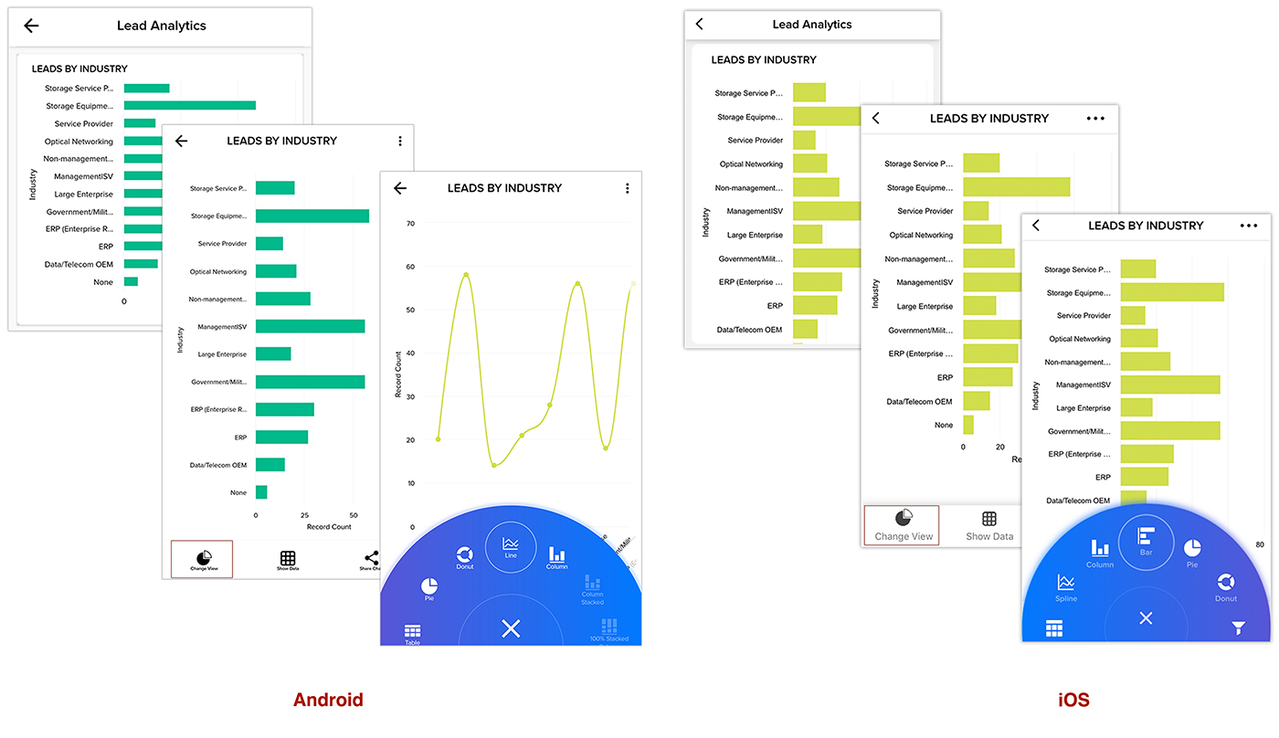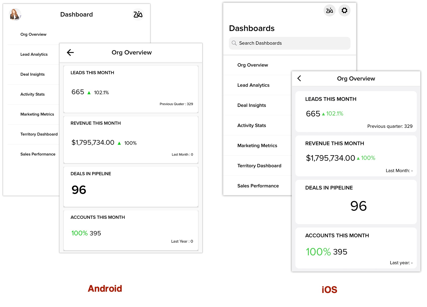To keep you in the loop, the Zoho CRM Analytics application lets you access all the dashboards that you have created from your mobile devices. You can view the underlying data that each component represents as a report and open the records used to make the report. You can also share the components of your dashboard with your coworkers. This gives you better access to your CRM wherever you go.