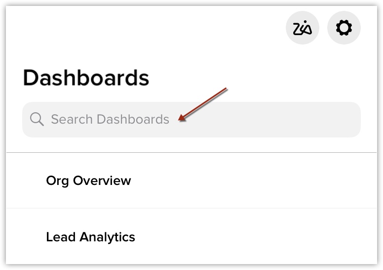 The Search button in the Dashboards window helps you find the dashboard that you are looking for.
