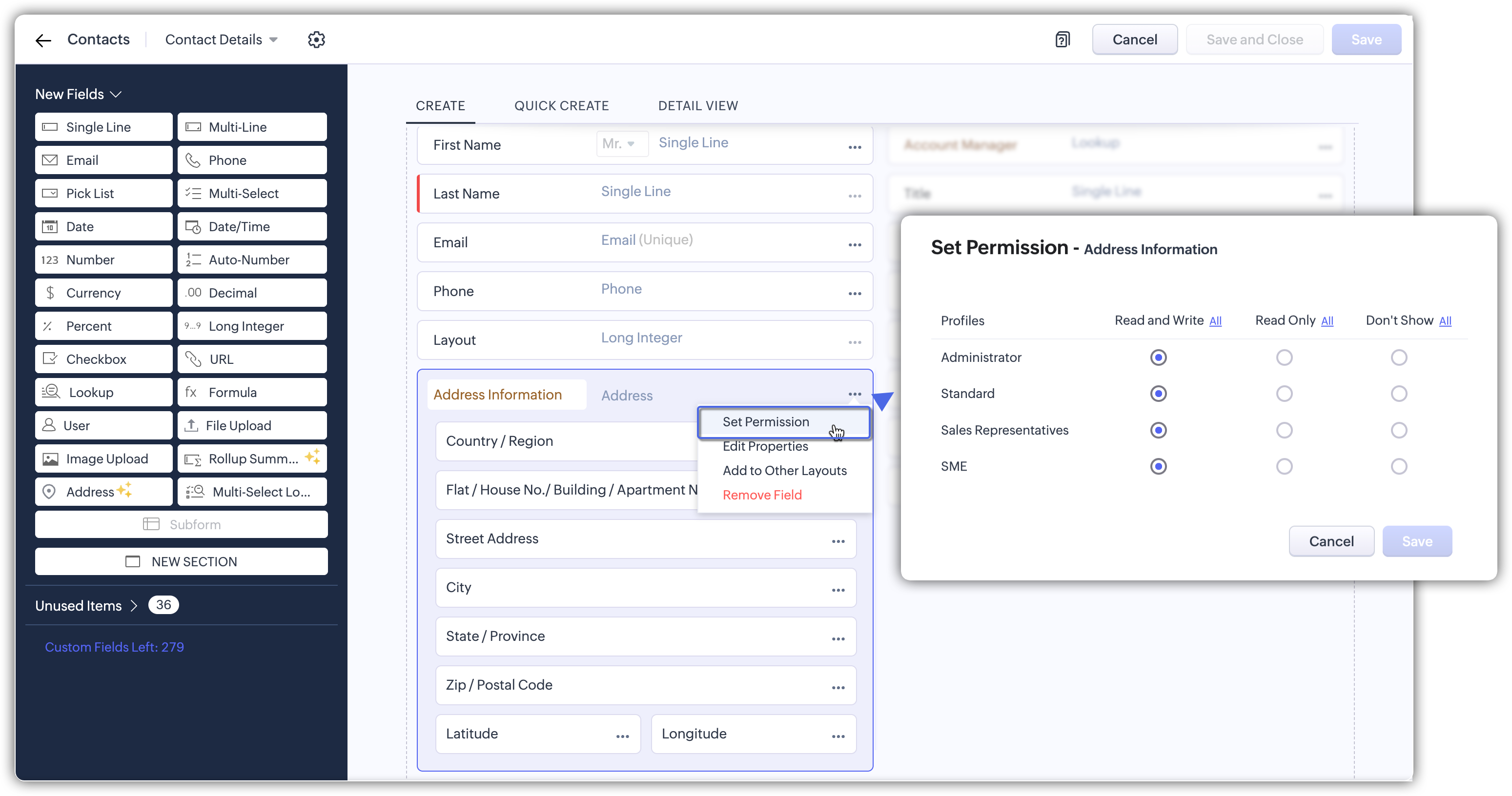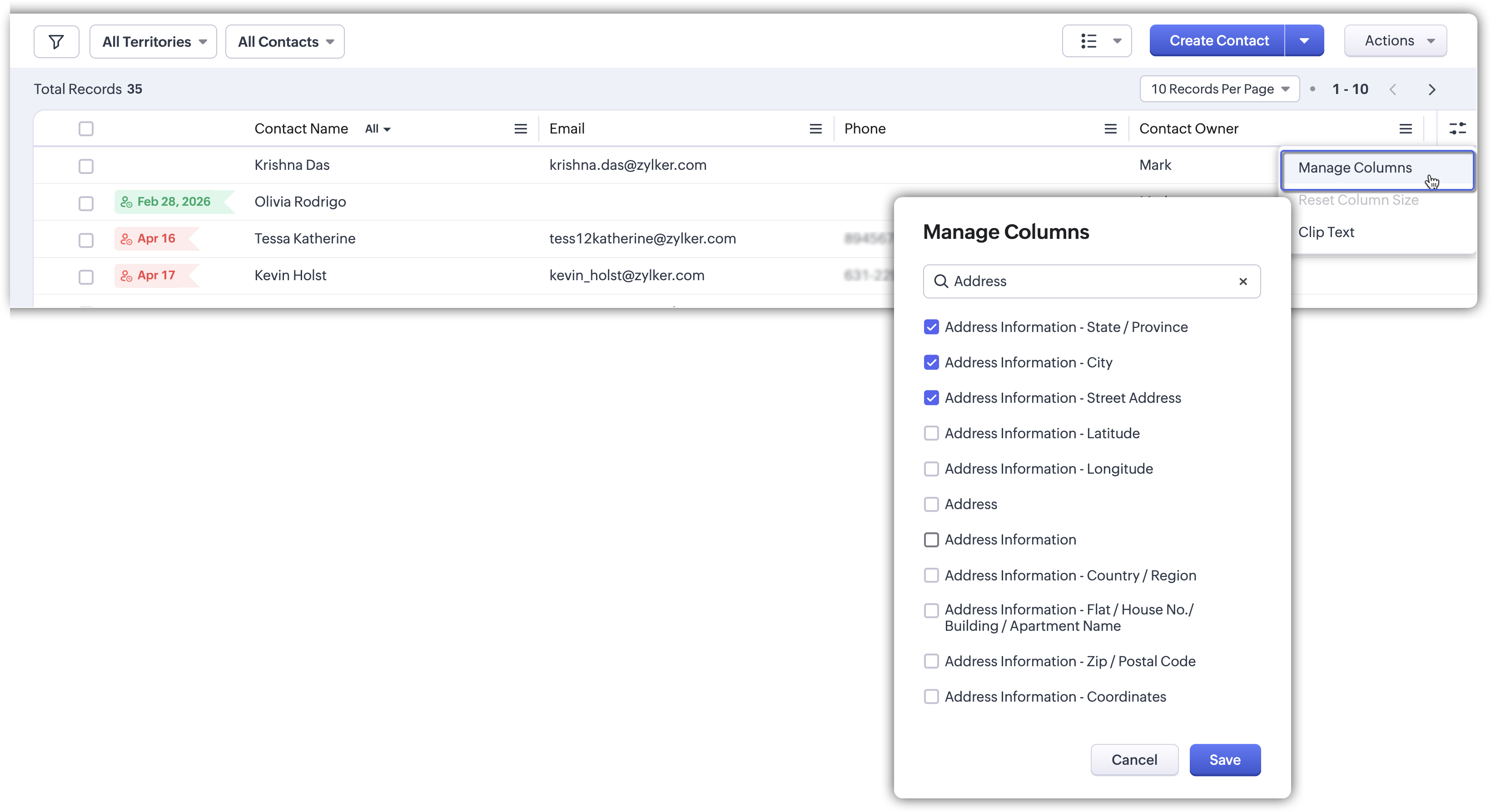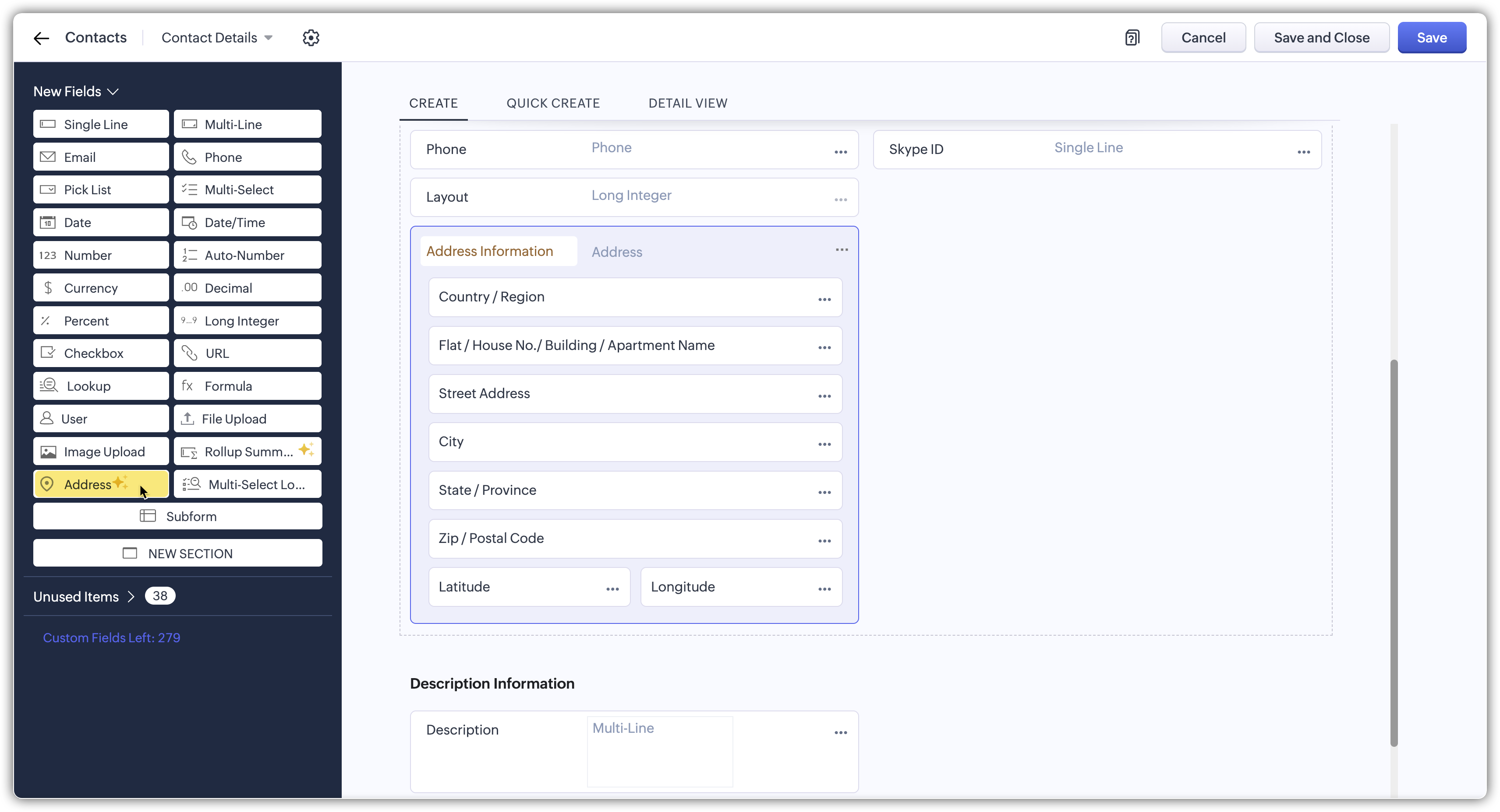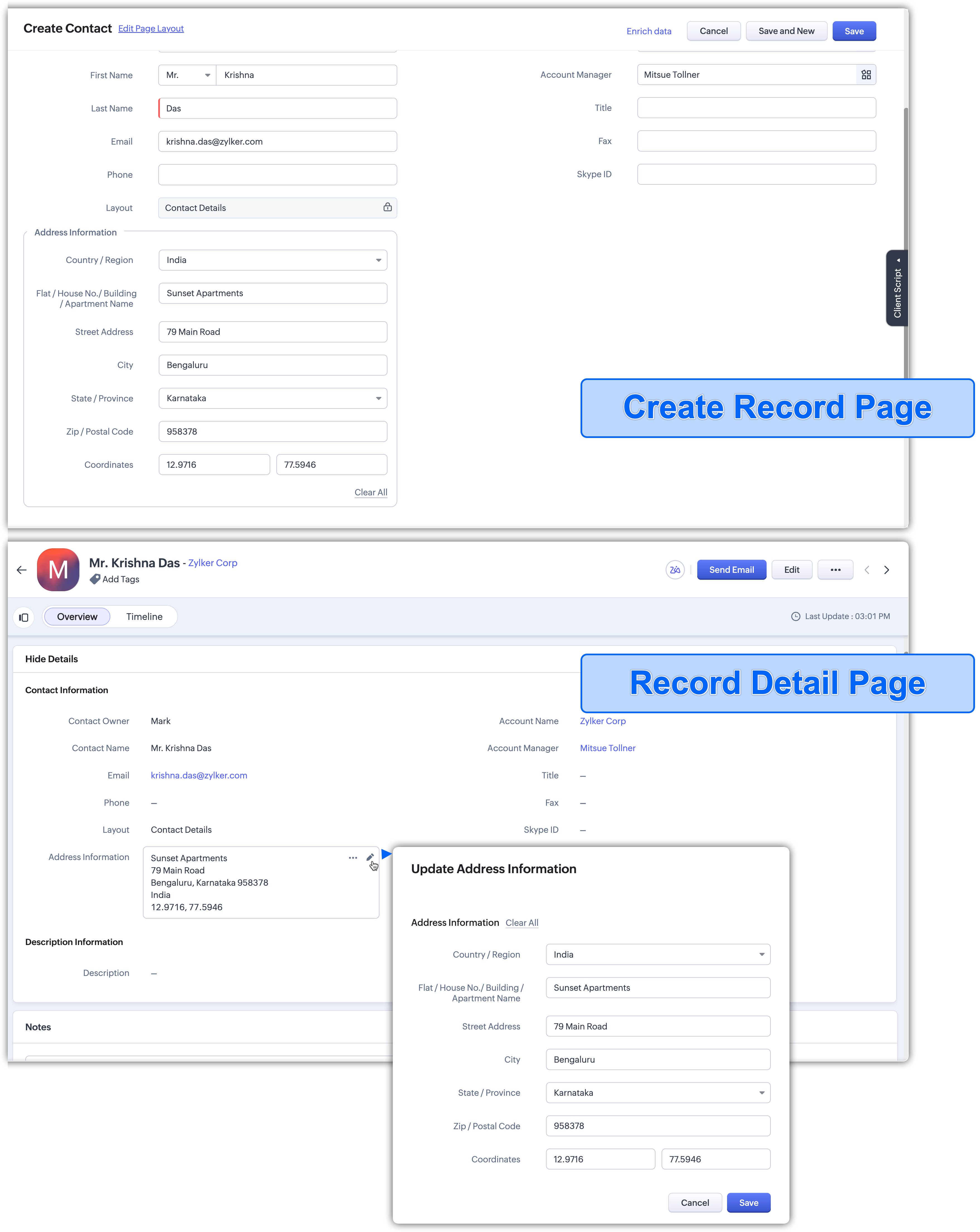 The Address Field in Zoho CRM is designed to make capturing and using address data easier, structured, and more reliable. Instead of scattering location details across multiple fields or using one long text box, you get a single, compound field that neatly organizes each part of the address. This makes it easier for users to enter data and far more useful for reporting, filtering, automation, and territory planning.