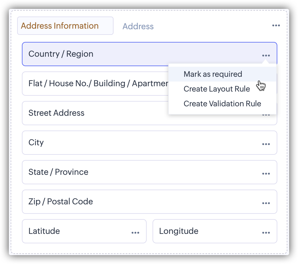 For new signups, system-defined address fields in Leads, Contacts, Accounts, Vendors, Quotes, Invoices, Sales Orders, and Purchase Orders are already in the new format.
