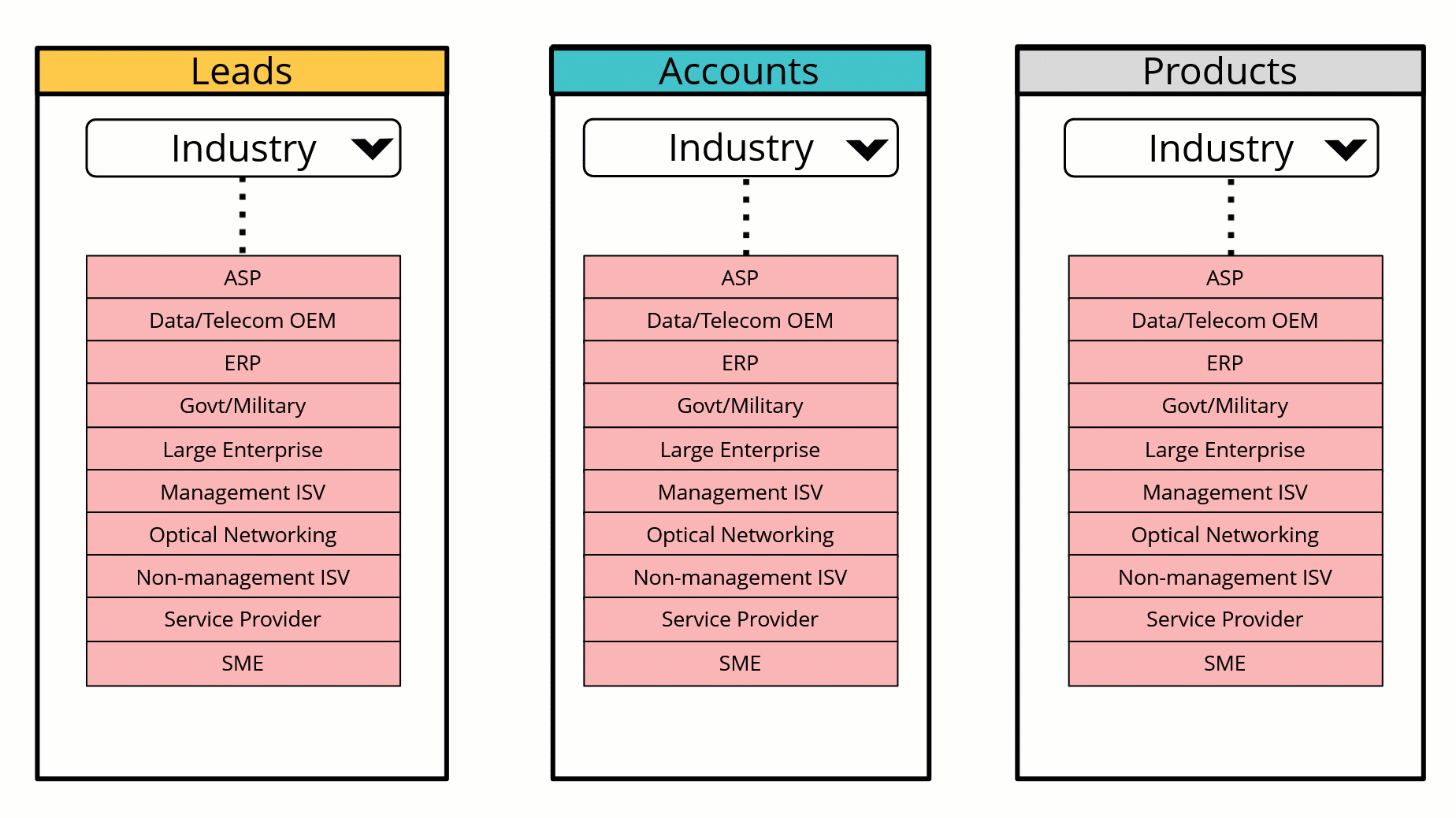 Your business caters to a wide range of industries. Teams across your organization look at industry categories as a means to understand the needs of your customers better. Accordingly, picklists with industry types as values are present in multiple modules. These values are stored in multiple records and used in workflow rules, reports, and so on.