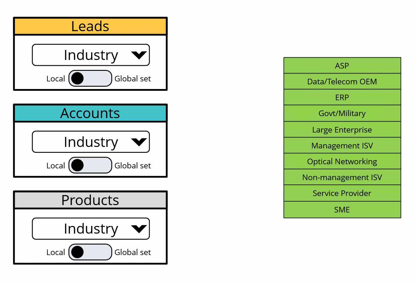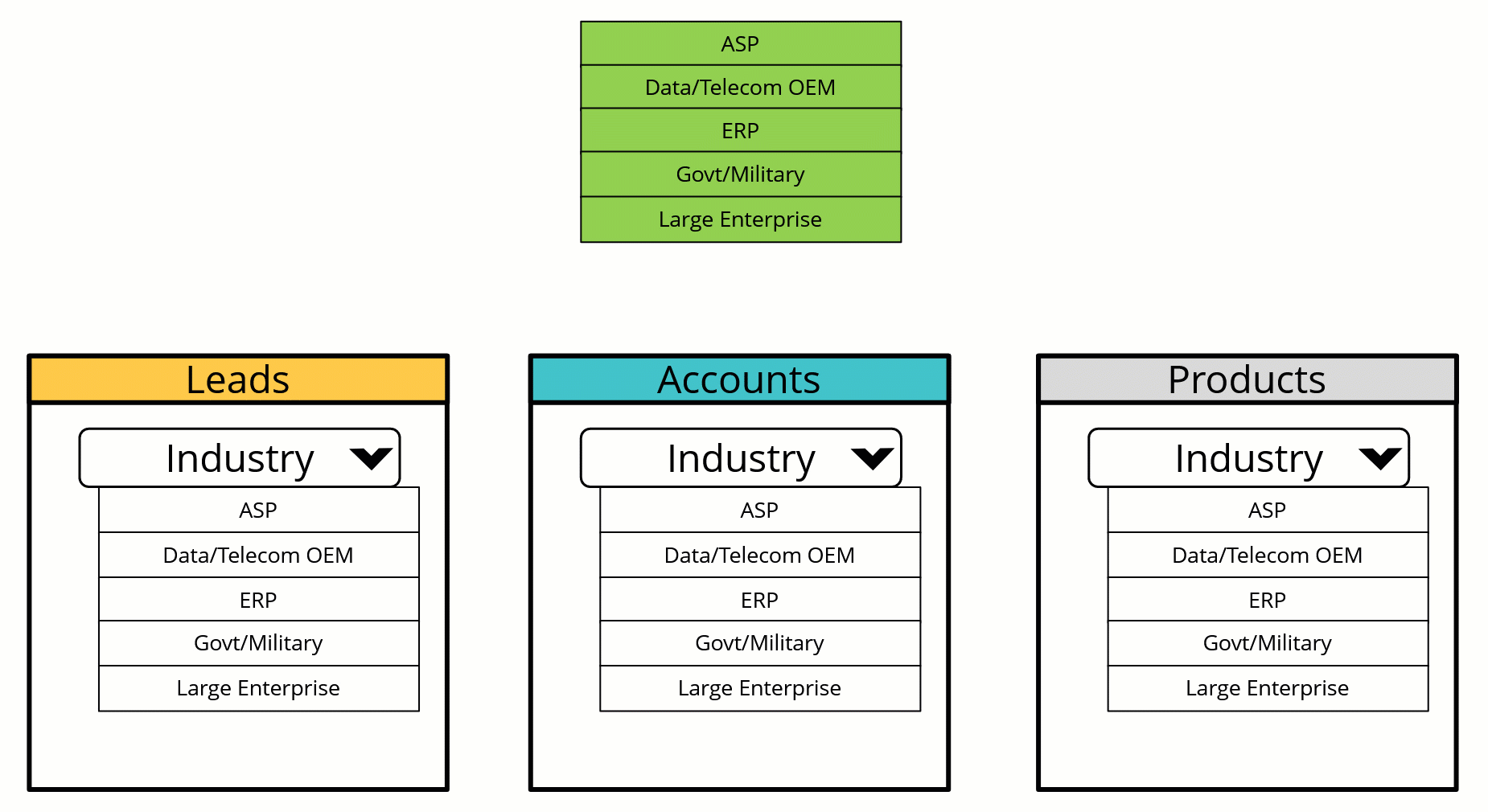 You may have picklists in your CRM system that have the same set of values. Normally, you would have to create and maintain a copy of this set of values separately for each picklist.