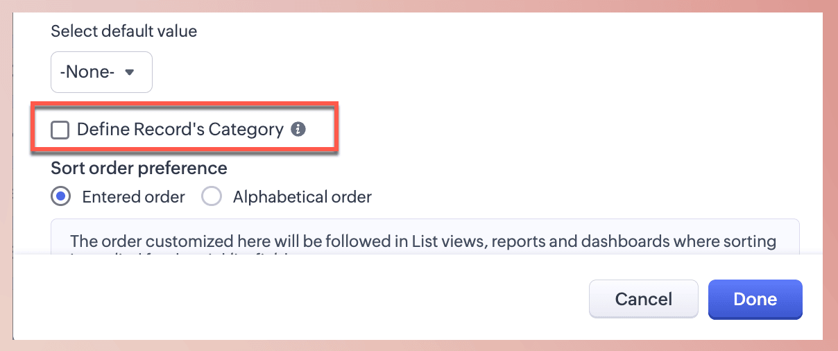 Let us consider an example to understand Record Category. In the Leads module, the Lead Status field captures detailed stages like New, Contacted, Lost, Unqualified, Qualified, Junk, etc. While these values provide depth, understanding a lead's overall state often requires scanning individual records, or reviewing status columns in list views. However, viewing lead progress at a high level or understanding a record’s overall state at a glance remains a challenge.