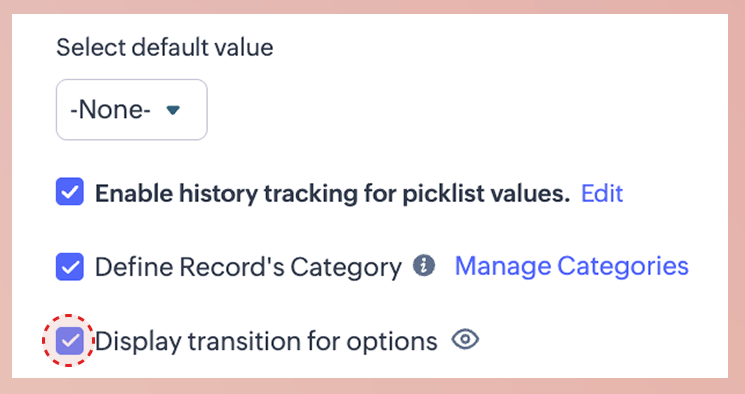 To get a bird's eye view of the record progress in the record's details page, enable Display Transition for options.