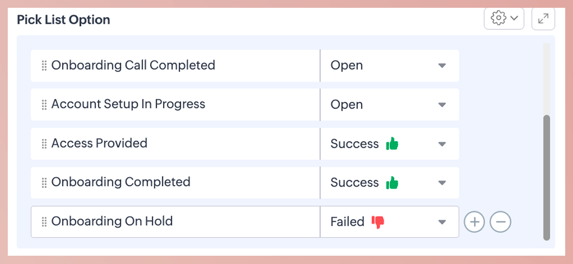 By mapping individual picklist values to record categories - such as the default categories Open, Success, or Failed, or custom ones - teams can easily interpret a record's status, use it in criteria and automation, and visually track progress through indicators like a transition strip on the record's details page. This brings clarity, consistency, and faster decision-making to everyday CRM operations across both default and custom modules.