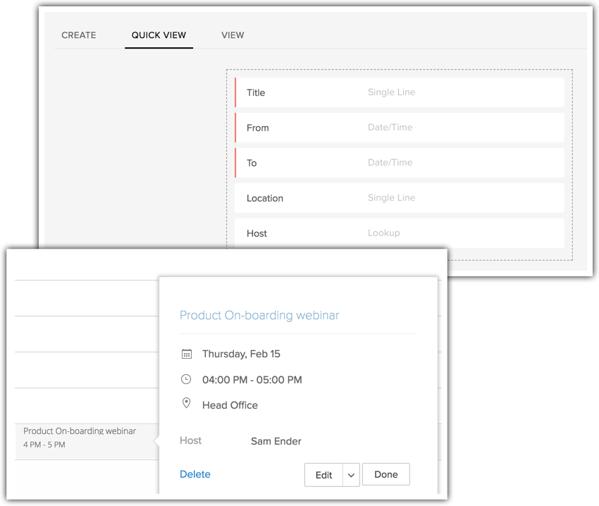 - Create - Creating a meeting requires you to fill up a form. The form lists some fields that can be customized. You can change the order of the fields, give colors to the picklist values, remove fields that are not required and also mark them as mandatory.