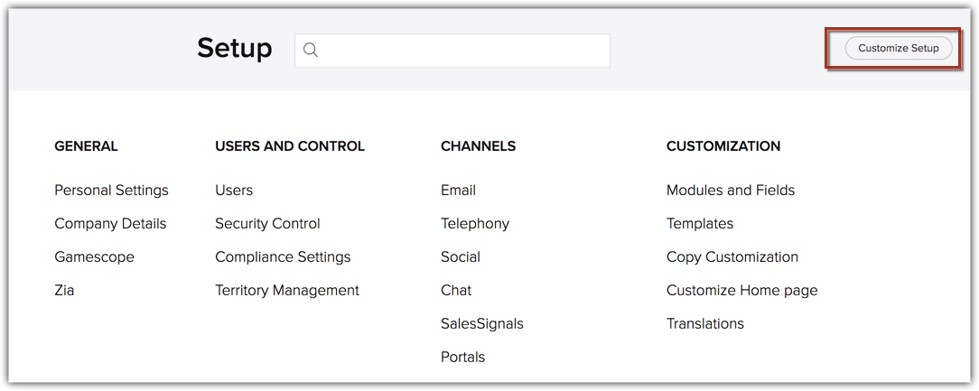 Zoho CRM provides enhanced user experience by enabling its users to customize the CRM setup page. In the section below we have listed out few benefits of personalizing the setup page: