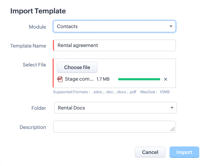 Once you have created and saved your mail merge templates in Zoho CRM, you can merge the documents with CRM records and email them to the desired customers' at any time. The following has to be specified to email merged document.