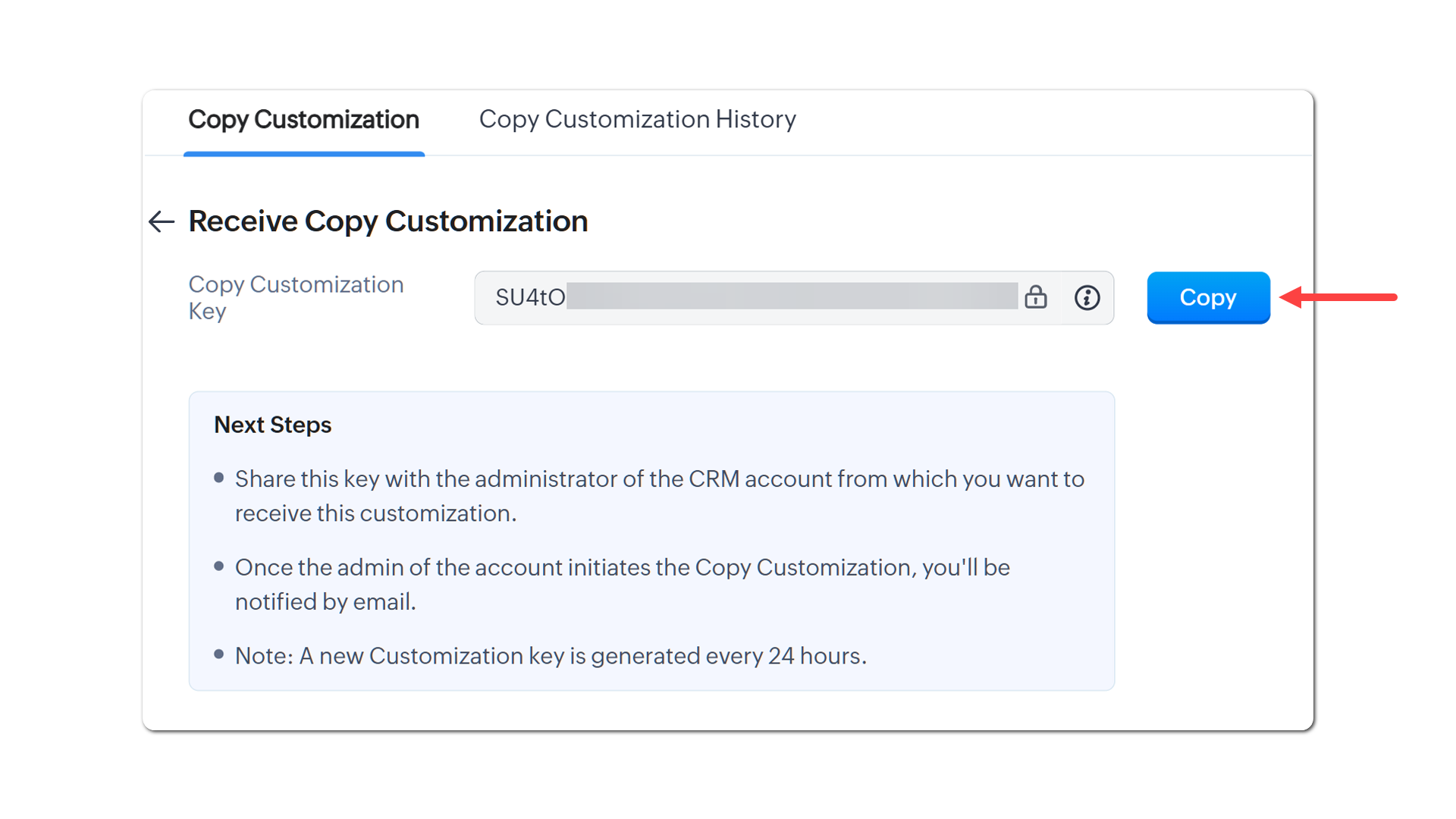 This document provides instructions on how to use Zoho CRM's Copy Customization feature.