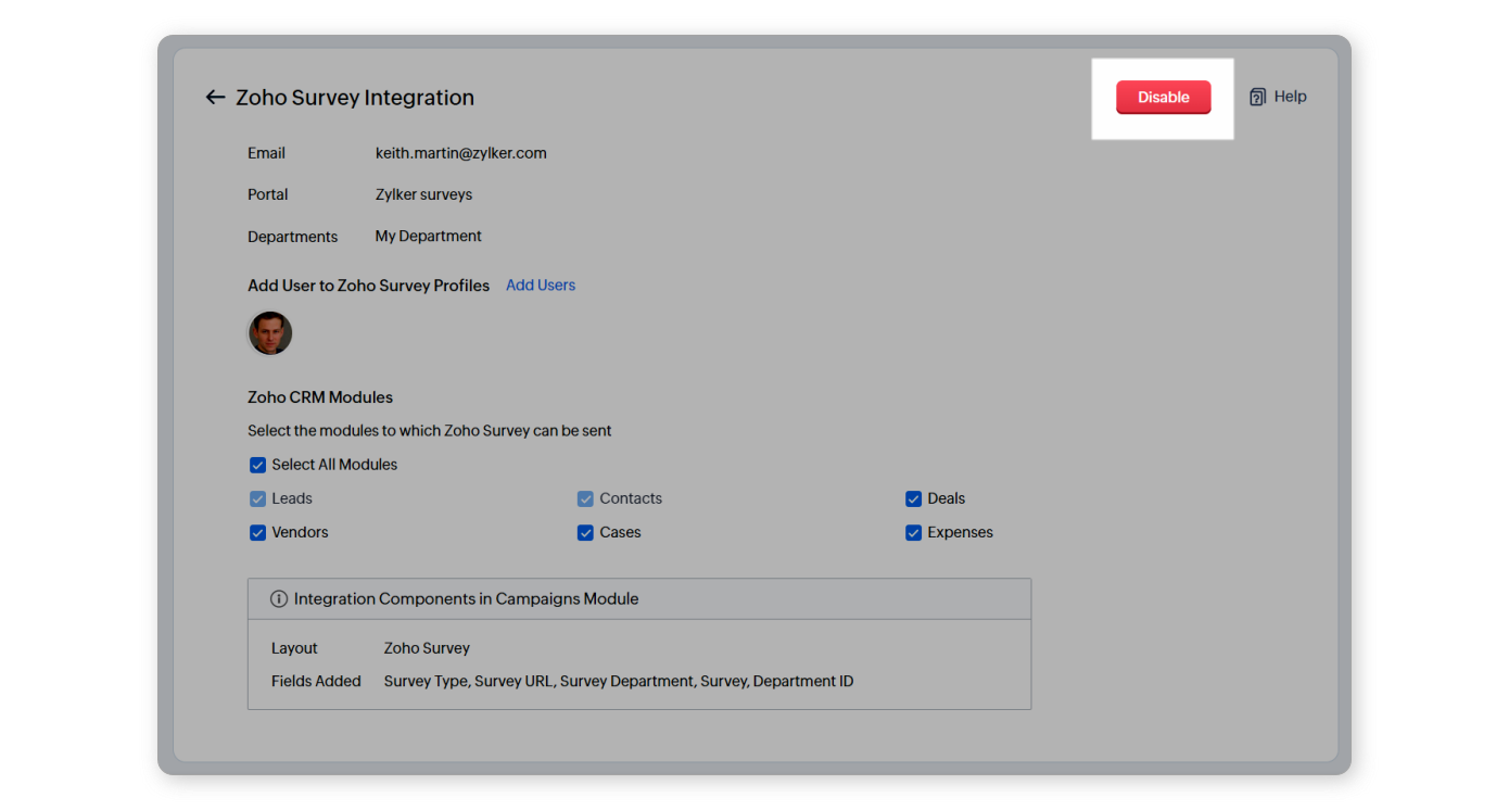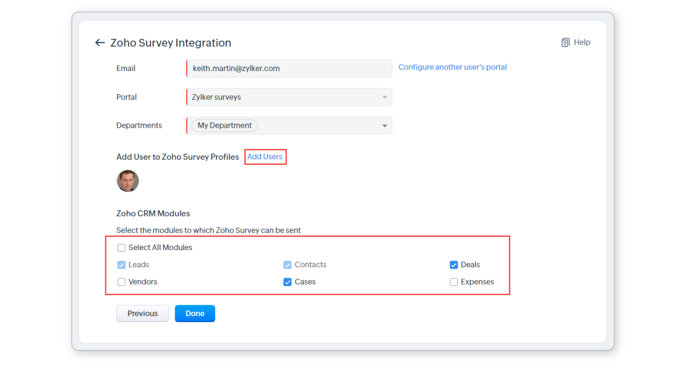 To learn how to use the Zoho Survey integration, please refer to the following help documents: