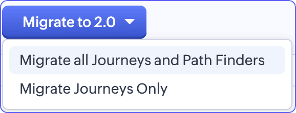 - Click the Migrate to 2.0 button and select Migrate Journeys Only.
