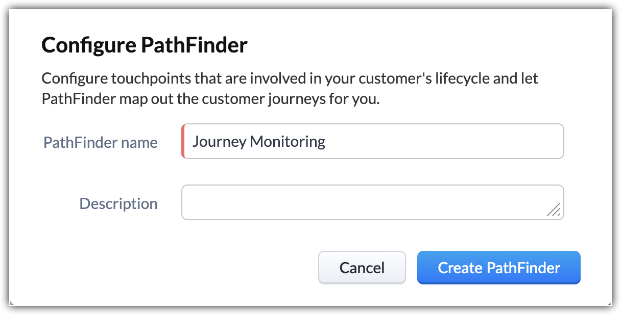 - In the Configure Path Finder popup, provide a name for the Path Finder and a description, then click Create Path Finder .